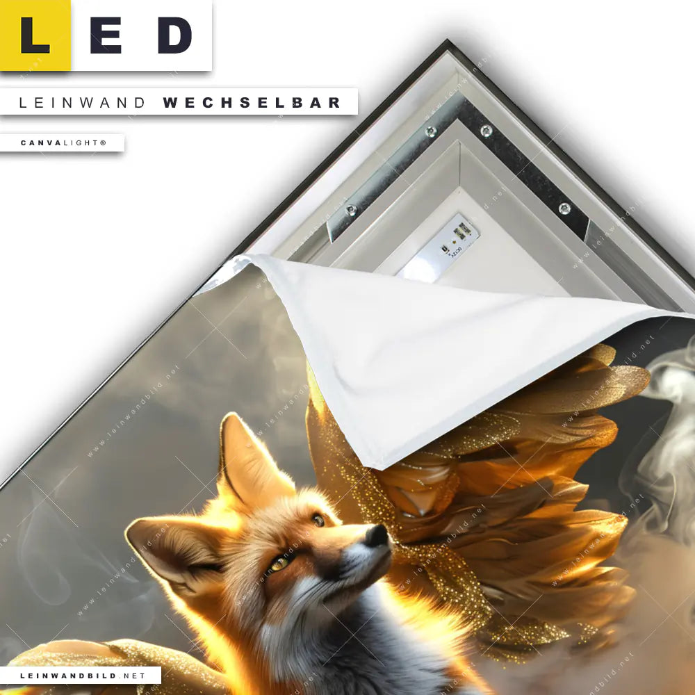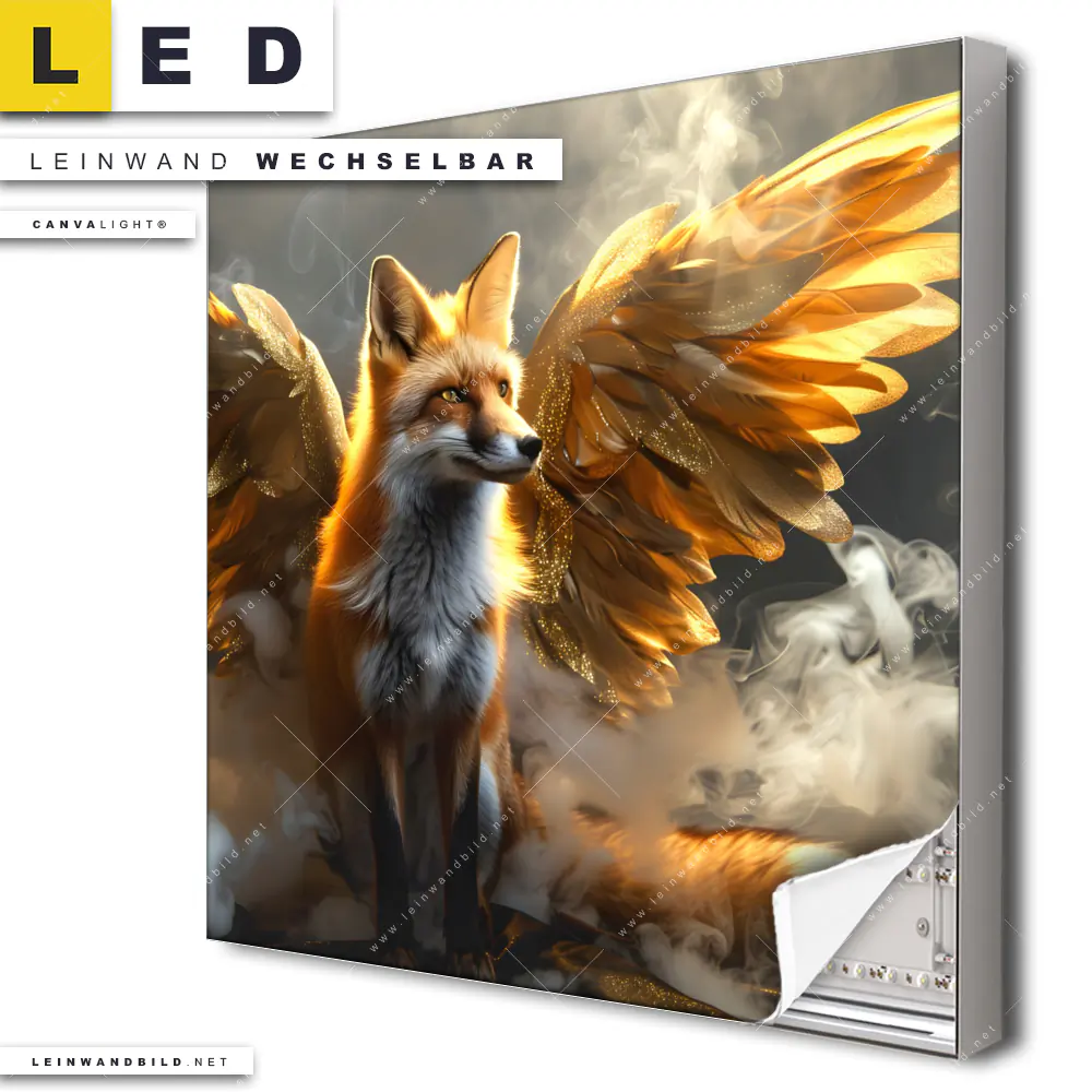 LED Leinwandbild Canvalight® TEX | Fuchs mit goldenen Flügeln | Quadrat