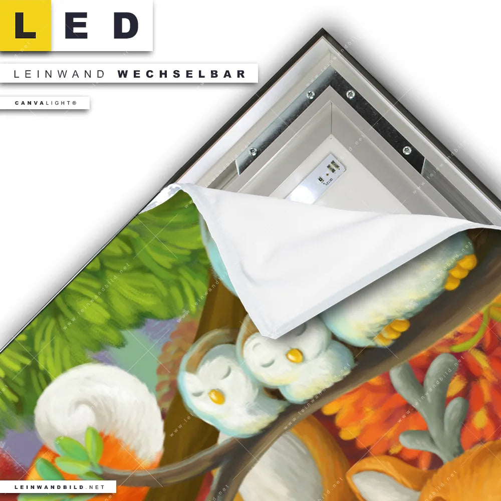 Du konfigurierst Dein individuelles LED Leinwandbild Canvalight® TEX | Niedliche Waldtiere | Hochformat und wir produzieren es NEU für Dich. Unsere Tierwelt LED Bilder mit wechselbarer Textil-Leinwand sind KEINE Lagerware. Du bist Dir unsicher, welches Motiv oder Format das richtige für dein individuelles Canvalight® Leuchtbild ist, dann helfen wir dir gerne weiter und beraten dich!