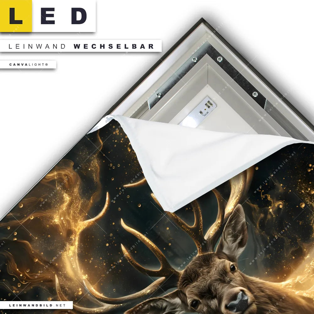 LED Leinwandbild Canvalight® TEX | Magischer Hirsch im Sternenlicht | Quadrat