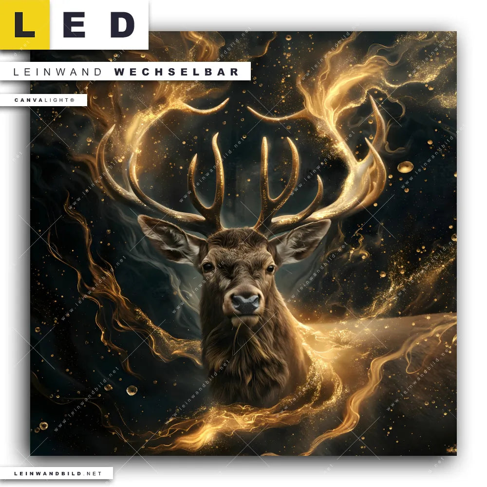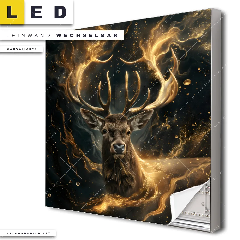 Du bist auf der Suche nach einem Tierwelt LED Leinwandbild im Quadratischen Format? Begriffe wie Rotwild, Wald, Hirsch, Geweih, Rothirsch, Magie, Flammen haben Dich auf der Suche nach Deinem neuen XXL LED Wandbild mit wechselbarer Leinwand inspiriert? Farben wie Schwarz, Braun, Gold dürfen auf Deinem neuen Leinwand-LED-Bild nicht fehlen und Leuchtbilder im Surreal - Fantasy, Modern Art Stil passen perfekt zu Deinem Einrichtungsstil?