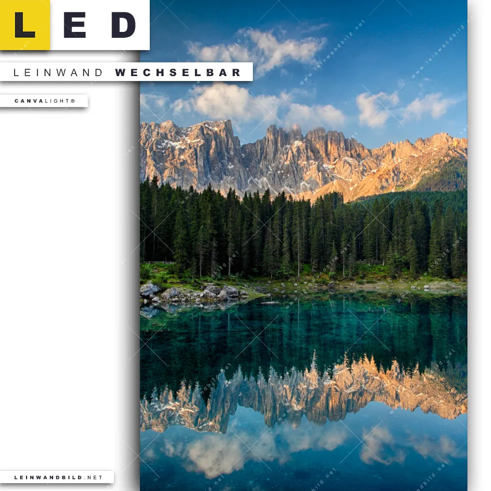 LED Leinwandbild Canvalight® TEX | Bergsee im Wald | Hochformat