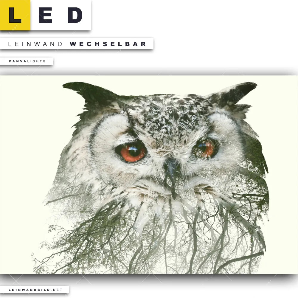 Du bist auf der Suche nach einem Tierwelt LED Leinwandbild im Querformat? Begriffe wie Vogel, Eule, Wald, Doppelbelichtung, Natur, skandinavisch, Bäume haben Dich auf der Suche nach Deinem neuen XXL LED Wandbild mit wechselbarer Leinwand inspiriert? Farben wie Weiss, Beige dürfen auf Deinem neuen breiten Leinwand-LED-Bild nicht fehlen und Leuchtbilder im Modern Art Stil passen perfekt zu Deinem Einrichtungsstil?