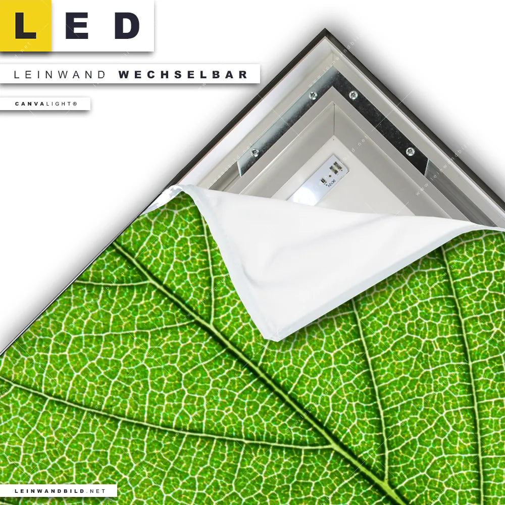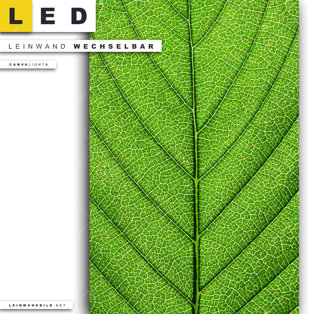 Du konfigurierst Dein individuelles LED Leinwandbild Canvalight® TEX | Grüne Blattadern | Hochformat und wir produzieren es NEU für Dich. Unsere Blumen - Botanik, Wald - Bäume LED Bilder mit wechselbarer Textil-Leinwand sind KEINE Lagerware. Du bist Dir unsicher, welches Motiv oder Format das richtige für dein individuelles Canvalight® Leuchtbild ist, dann helfen wir dir gerne weiter und beraten dich!