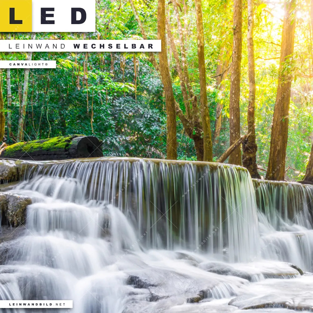 LED Leinwandbild Canvalight® TEX | Wald & Wasserfall No. 1 | Querformat