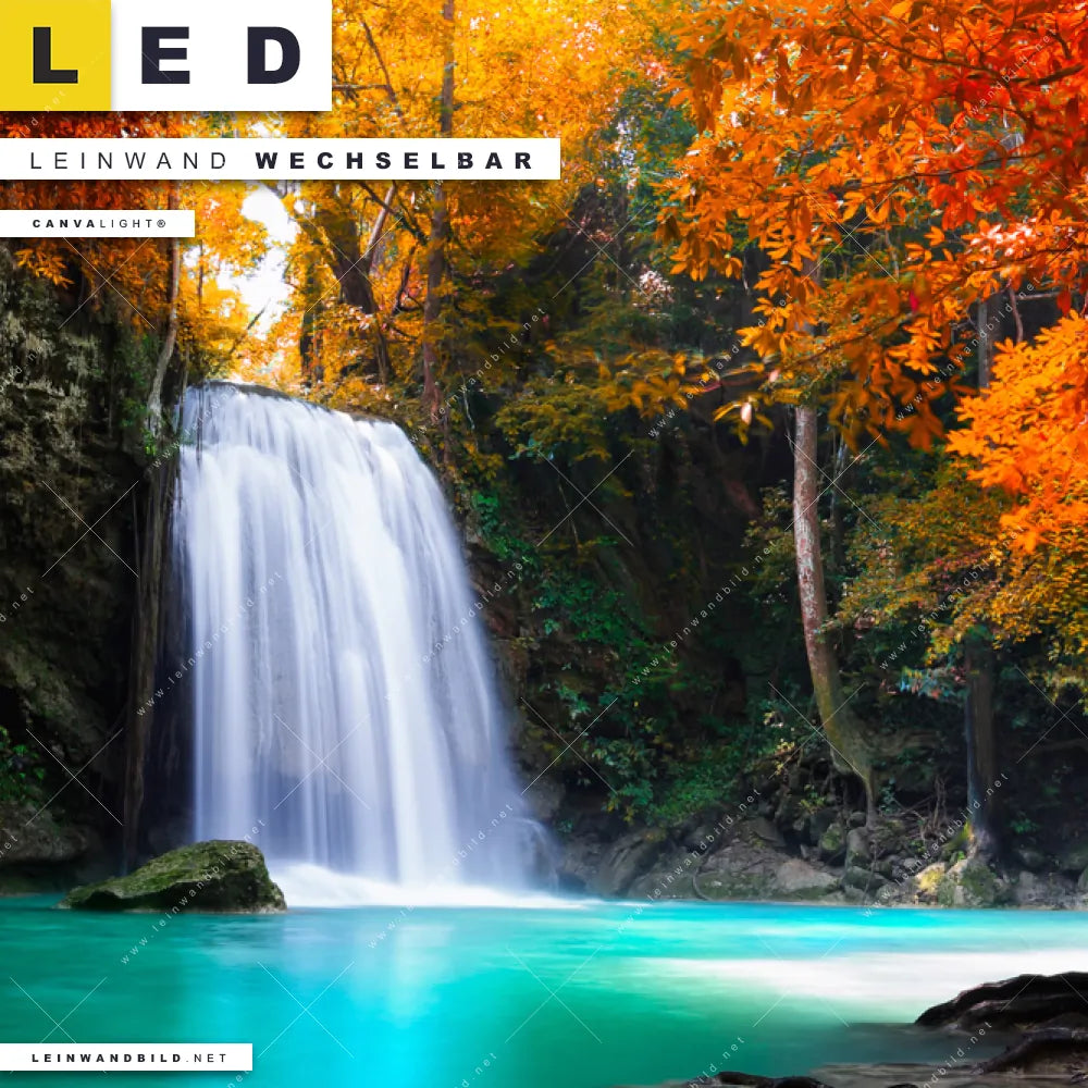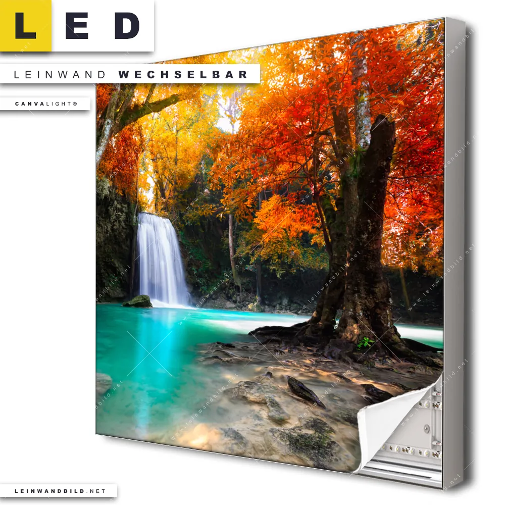 Du bist auf der Suche nach einem Landschaften, Wald - Bäume LED Leinwandbild im Quadratischen Format? Begriffe wie Wasserfall, Landschaft, Natur, Herbst, Wald haben Dich auf der Suche nach Deinem neuen XXL LED Wandbild mit wechselbarer Leinwand inspiriert? Farben wie Rot, Orange, Türkis, Braun dürfen auf Deinem neuen Leinwand-LED-Bild nicht fehlen und Leuchtbilder im Natürlich - Realistisch Stil passen perfekt zu Deinem Einrichtungsstil?