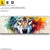 Bitte beachte, dass die Farben, der auf dem Monitor abgebildeten bunter Wolfskopf umgeben von Farbenpracht Darstellung, möglicherweise von den Originalfarben deines LED Leinwandbildes abweichen können.