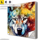 LED Leinwandbild Canvalight® TEX | Wolf mit bunten Farbspritzern No. 2 | Querformat