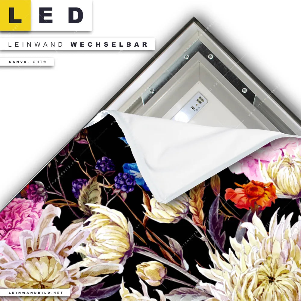 LED Leinwandbild Canvalight® TEX | Aquarell von wilden Blumen | Hochformat