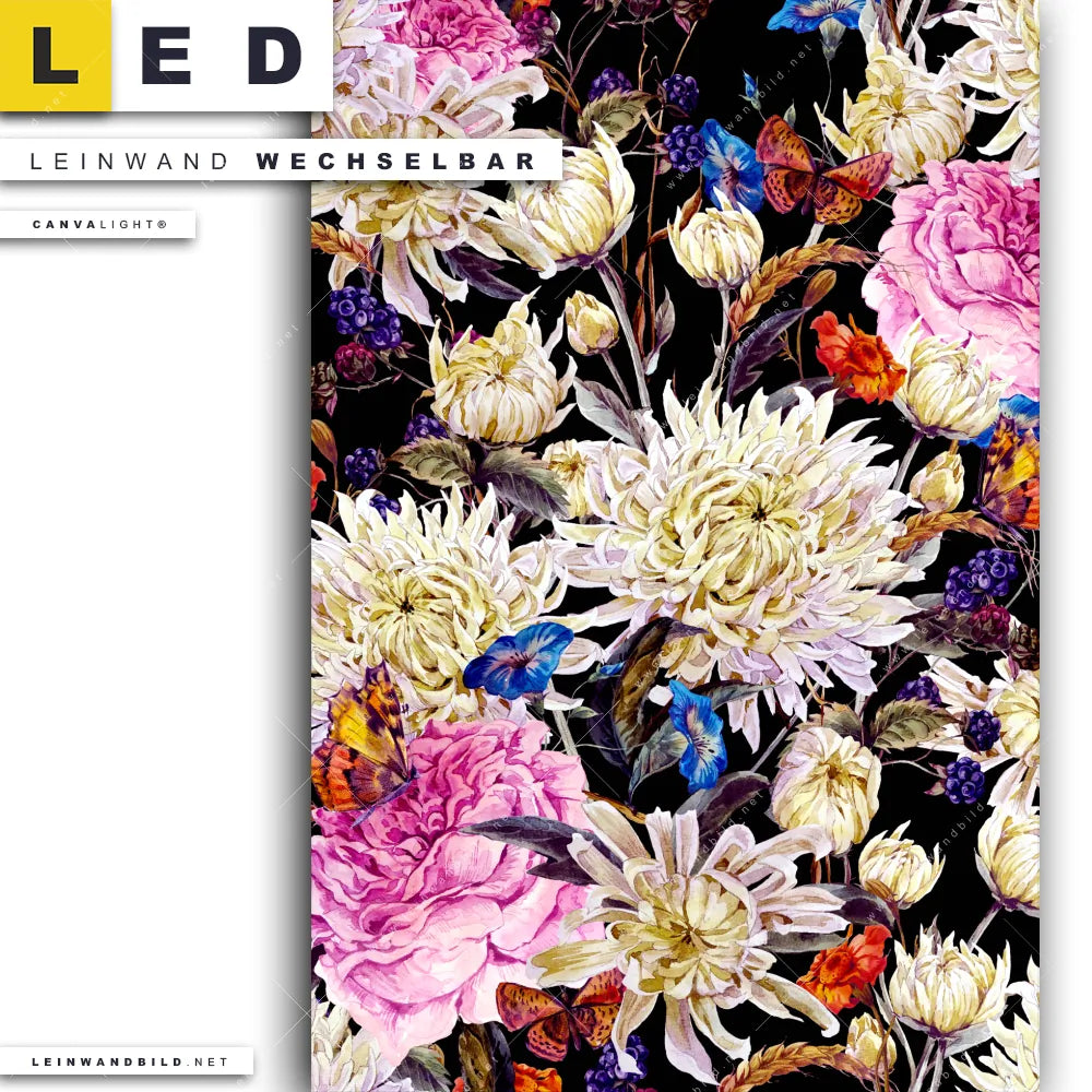 Du bist auf der Suche nach einem Blumen - Botanik LED Leinwandbild im Hochformat? Begriffe wie Blume, Botanik, Pflanze, Natur, Aquarell, Wasserfarbe, Blumen, romantisch, Blüten, Bouquet, Blumenstrauß, Schmetterling haben Dich auf der Suche nach Deinem neuen XXL LED Wandbild mit wechselbarer Leinwand inspiriert? Farben wie Weiss, Schwarz, Blau, Lila, Orange, Rot, Rosa dürfen auf Deinem neuen Leinwand-LED-Bild nicht fehlen und Leuchtbilder im Floral, Retro - Vintage Stil passen perfekt zu Deinem Einrichtungsstil?