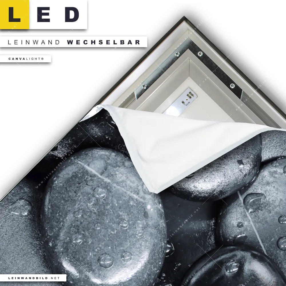Du konfigurierst Dein individuelles LED Leinwandbild Canvalight® TEX | Blaue Blume & Graue Steine | Hochformat und wir produzieren es NEU für Dich. Unsere Buddha - Feng Shui, Blumen - Botanik LED Bilder mit wechselbarer Textil-Leinwand sind KEINE Lagerware. Du bist Dir unsicher, welches Motiv oder Format das richtige für dein individuelles Canvalight® Leuchtbild ist, dann helfen wir dir gerne weiter und beraten dich!