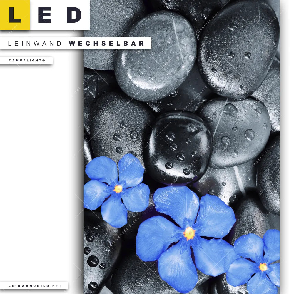 LED Leinwandbild Canvalight® TEX | Blaue Blume & Graue Steine | Hochformat