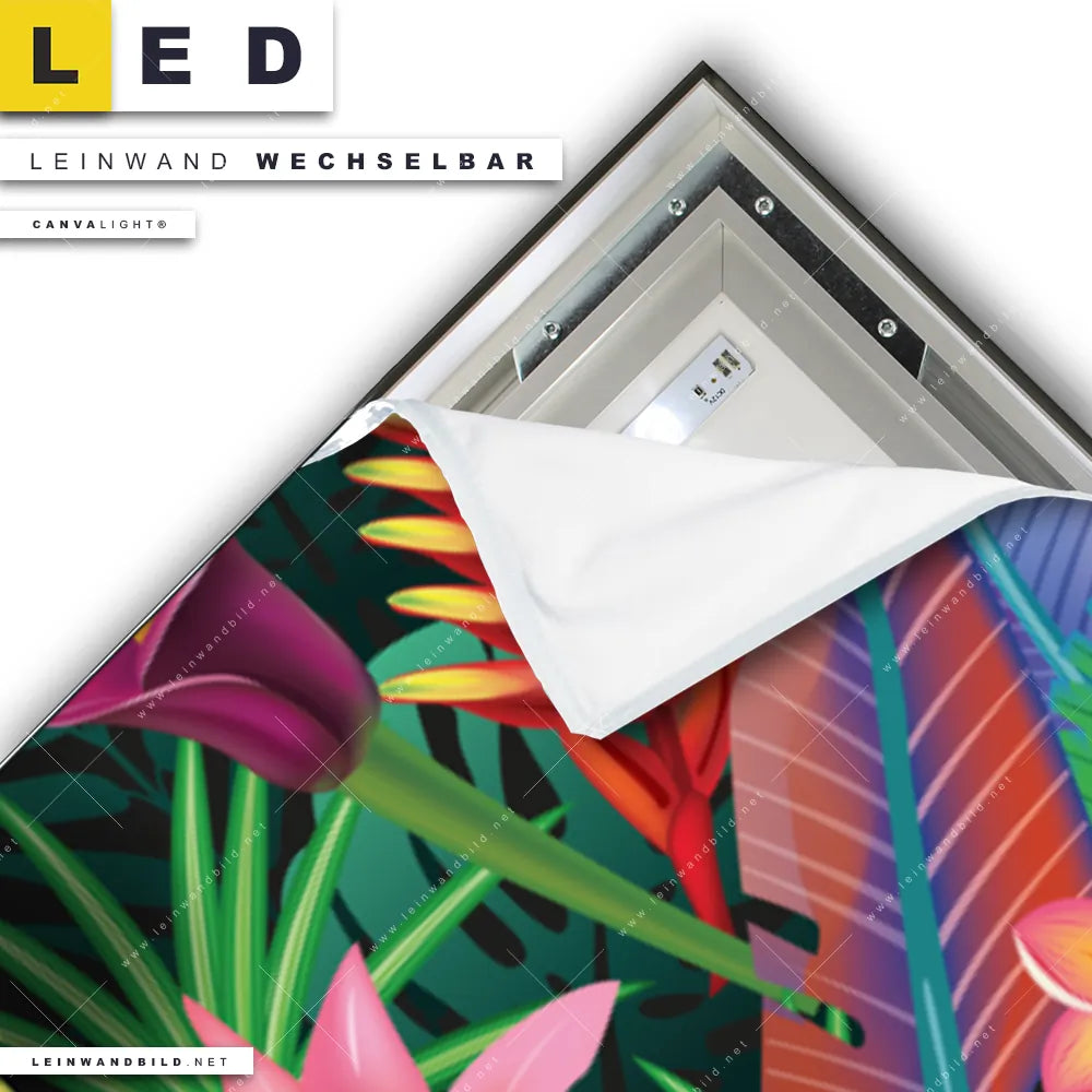 Du konfigurierst Dein individuelles LED Leinwandbild Canvalight® TEX | Exotische Tropenpflanzen | Panorama und wir produzieren es NEU für Dich. Unsere Blumen - Botanik LED Bilder mit wechselbarer Textil-Leinwand sind KEINE Lagerware. Du bist Dir unsicher, welches Motiv oder Format das richtige für dein individuelles Canvalight® Leuchtbild ist, dann helfen wir dir gerne weiter und beraten dich!