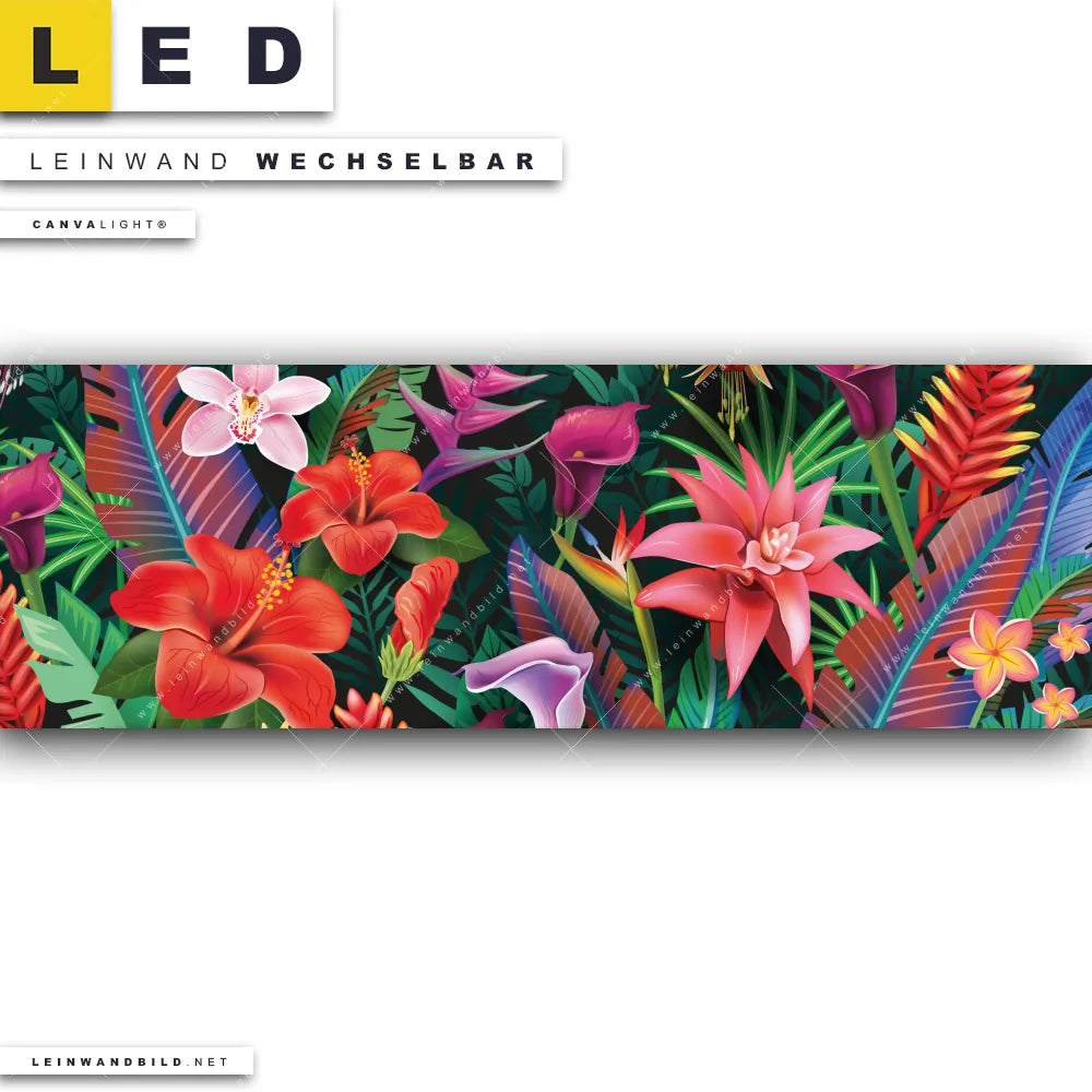 Du bist auf der Suche nach einem Blumen - Botanik LED Leinwandbild im Panorama-Format? Begriffe wie Blätter, Pflanze, Natur, Laub, Dschungel, Blüten, Blumen haben Dich auf der Suche nach Deinem neuen XXL LED Wandbild mit wechselbarer Leinwand inspiriert? Farben wie Grün, Rot, Gelb , Blau dürfen auf Deinem neuen extra breiten Leinwand-LED-Bild nicht fehlen und Leuchtbilder im Floral, Modern Art Stil passen perfekt zu Deinem Einrichtungsstil?