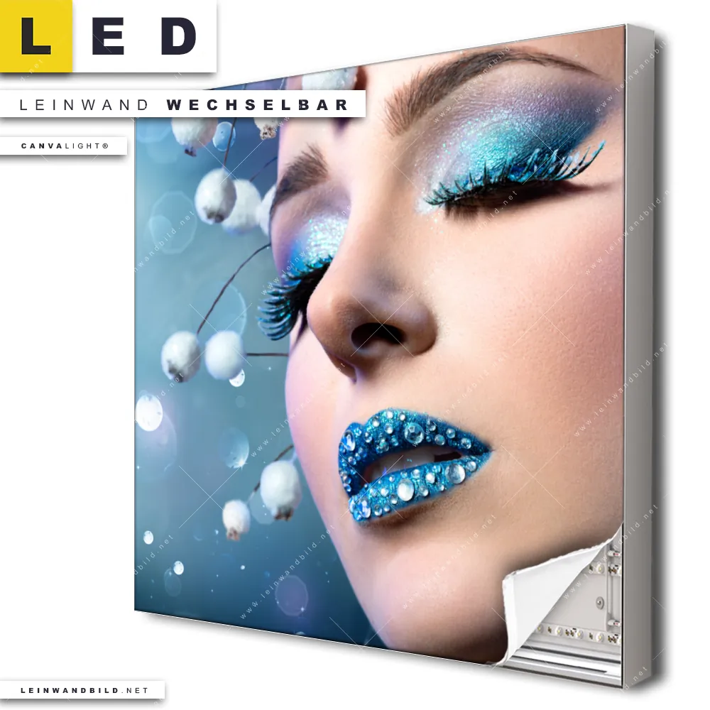 Du konfigurierst Dein individuelles LED Leinwandbild Canvalight® TEX | Schönheit in Blau & Weiss | Quadrat und wir produzieren es NEU für Dich. Unsere Porträts - Menschen LED Bilder mit wechselbarer Textil-Leinwand sind KEINE Lagerware. Du bist Dir unsicher, welches Motiv oder Format das richtige für dein individuelles Canvalight® Leuchtbild ist, dann helfen wir dir gerne weiter und beraten dich!
