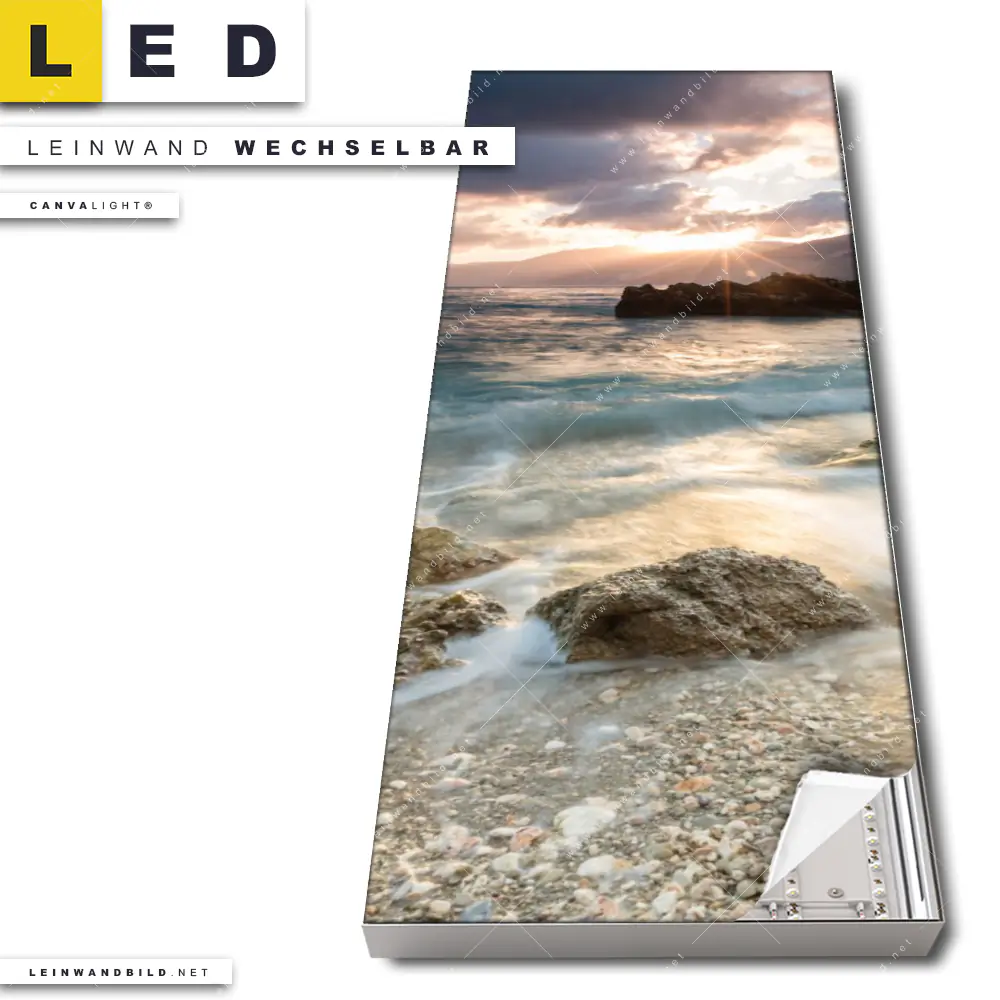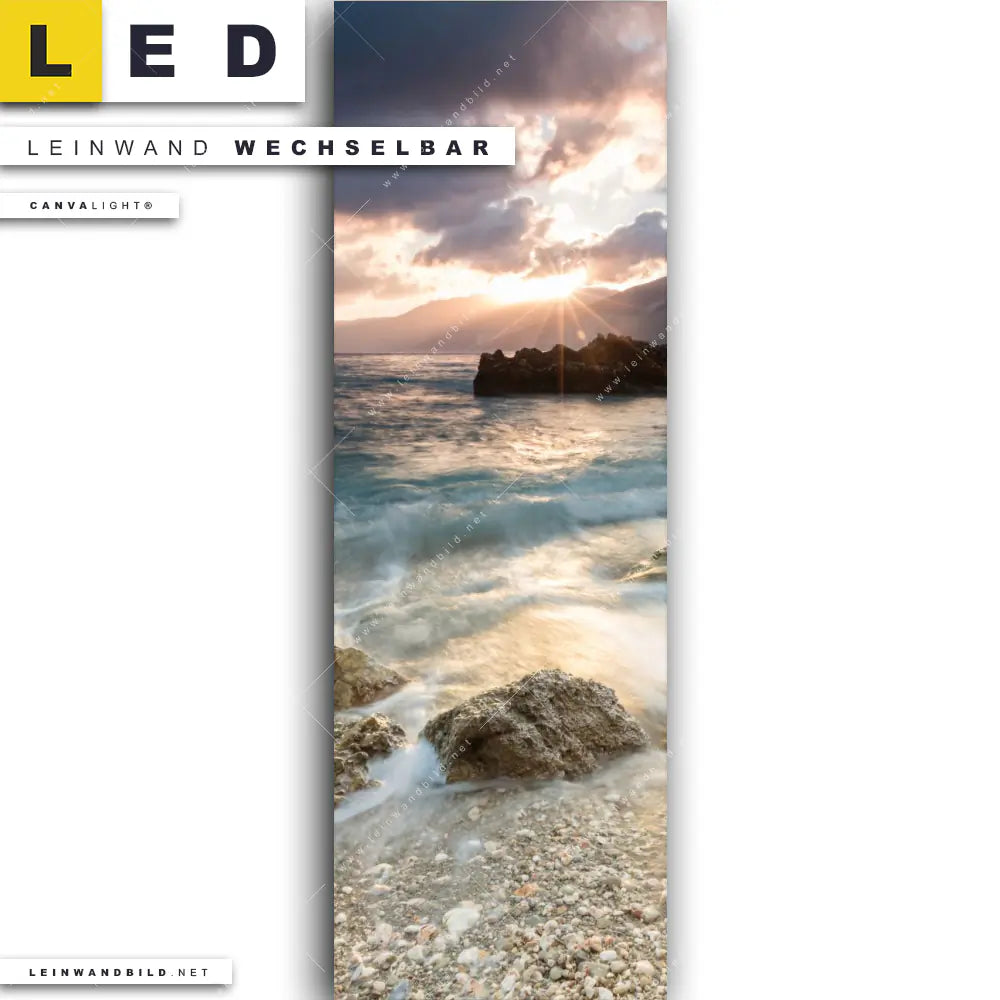 LED Leinwandbild Canvalight® TEX | Meeresrauschen bei Sonnenuntergang | Schmal