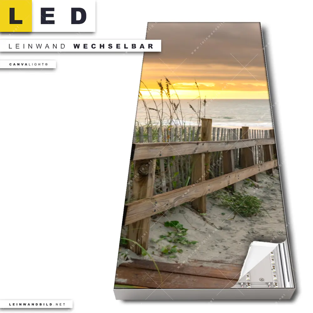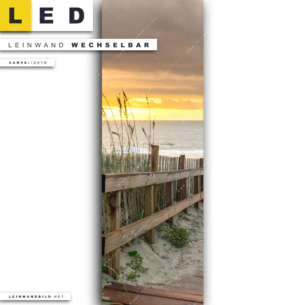 LED Leinwandbild Canvalight® TEX | Sonnenuntergang am Strandweg | Schmal