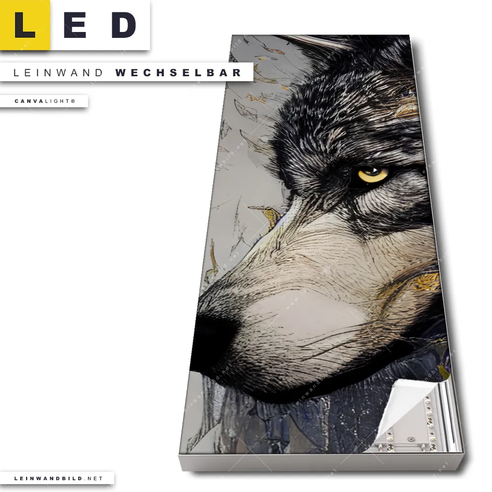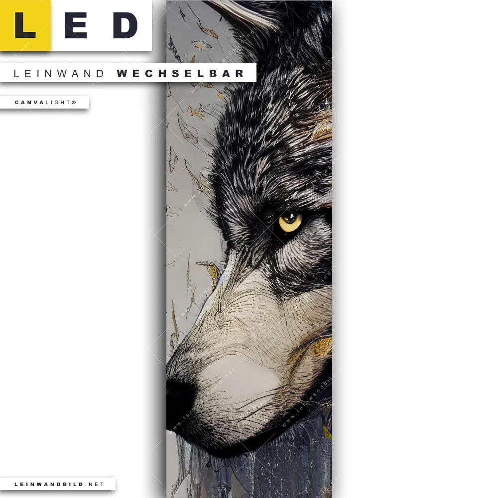 LED Leinwandbild Canvalight® TEX | Abstrakter Wolf in Gold und Grau | Schmal