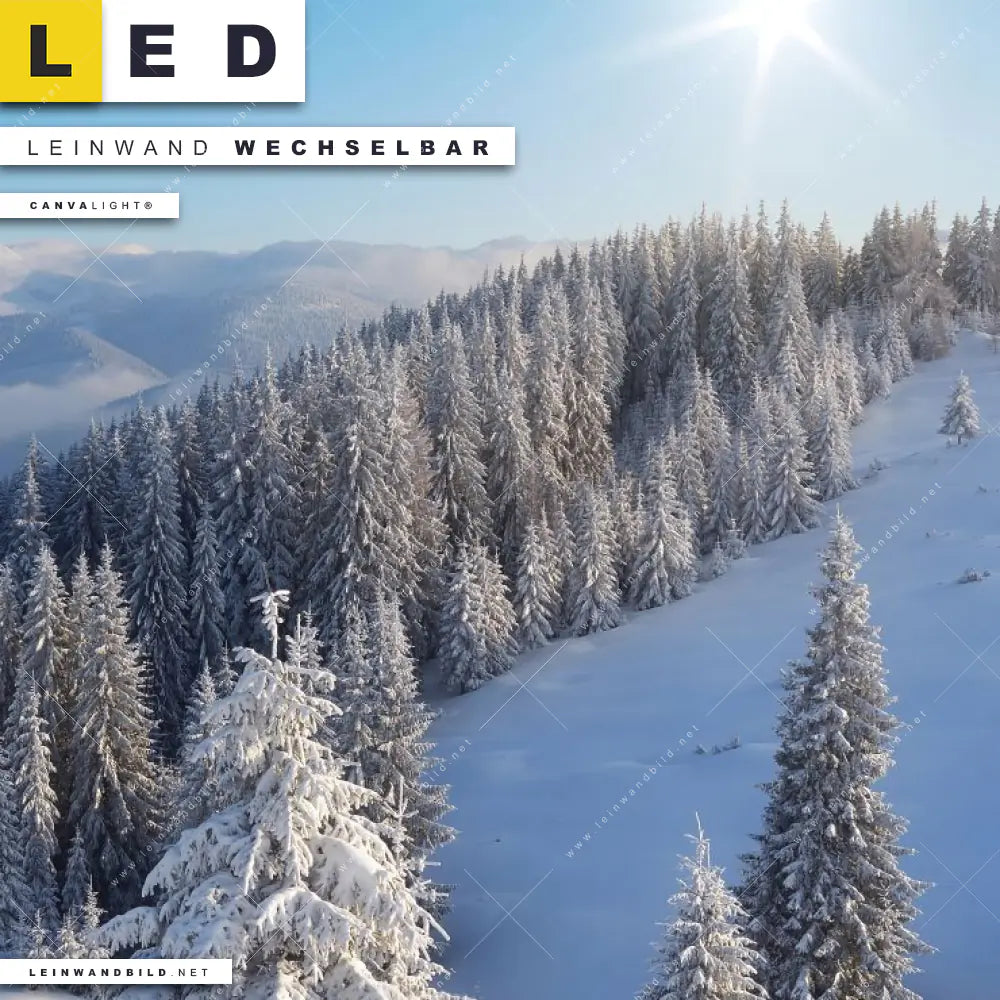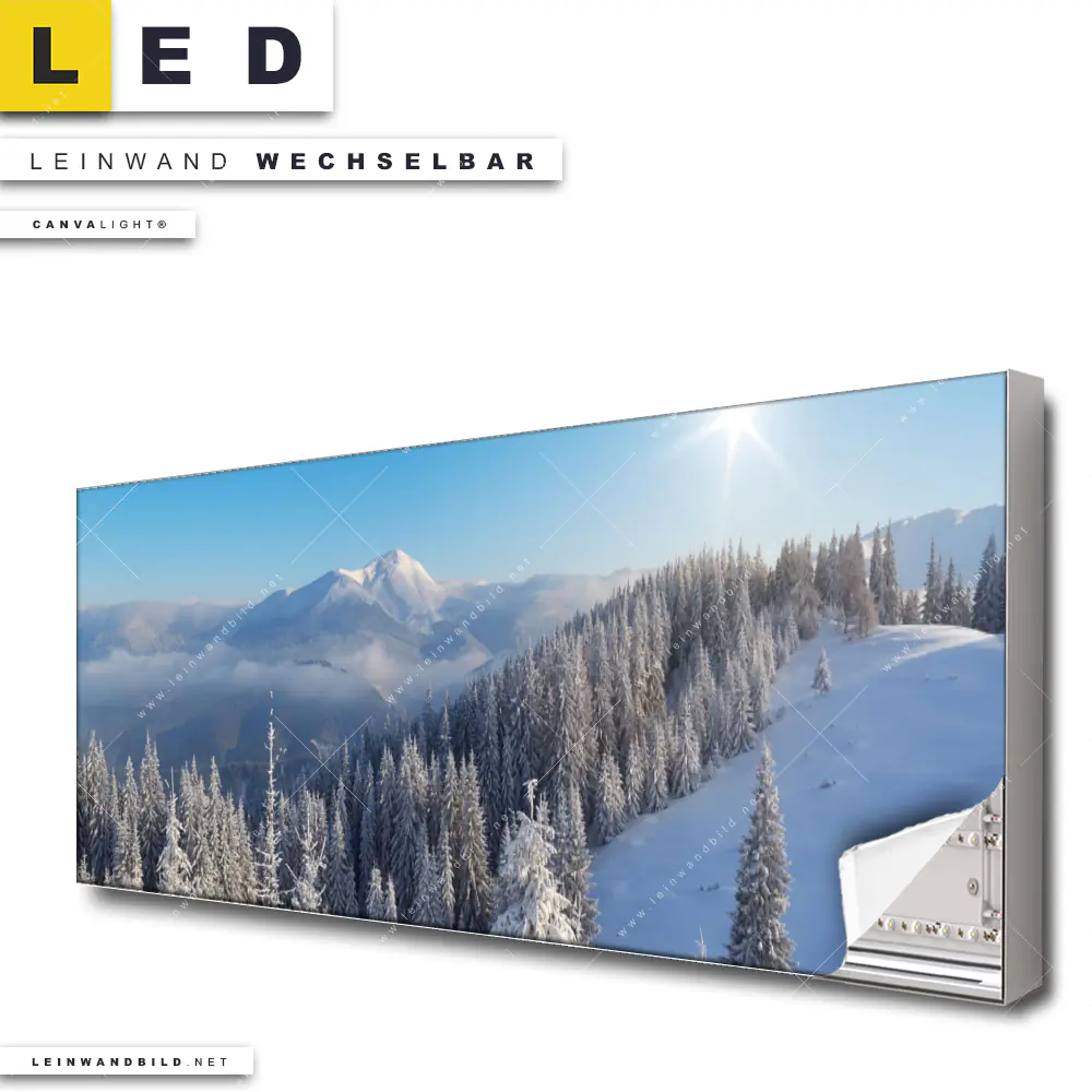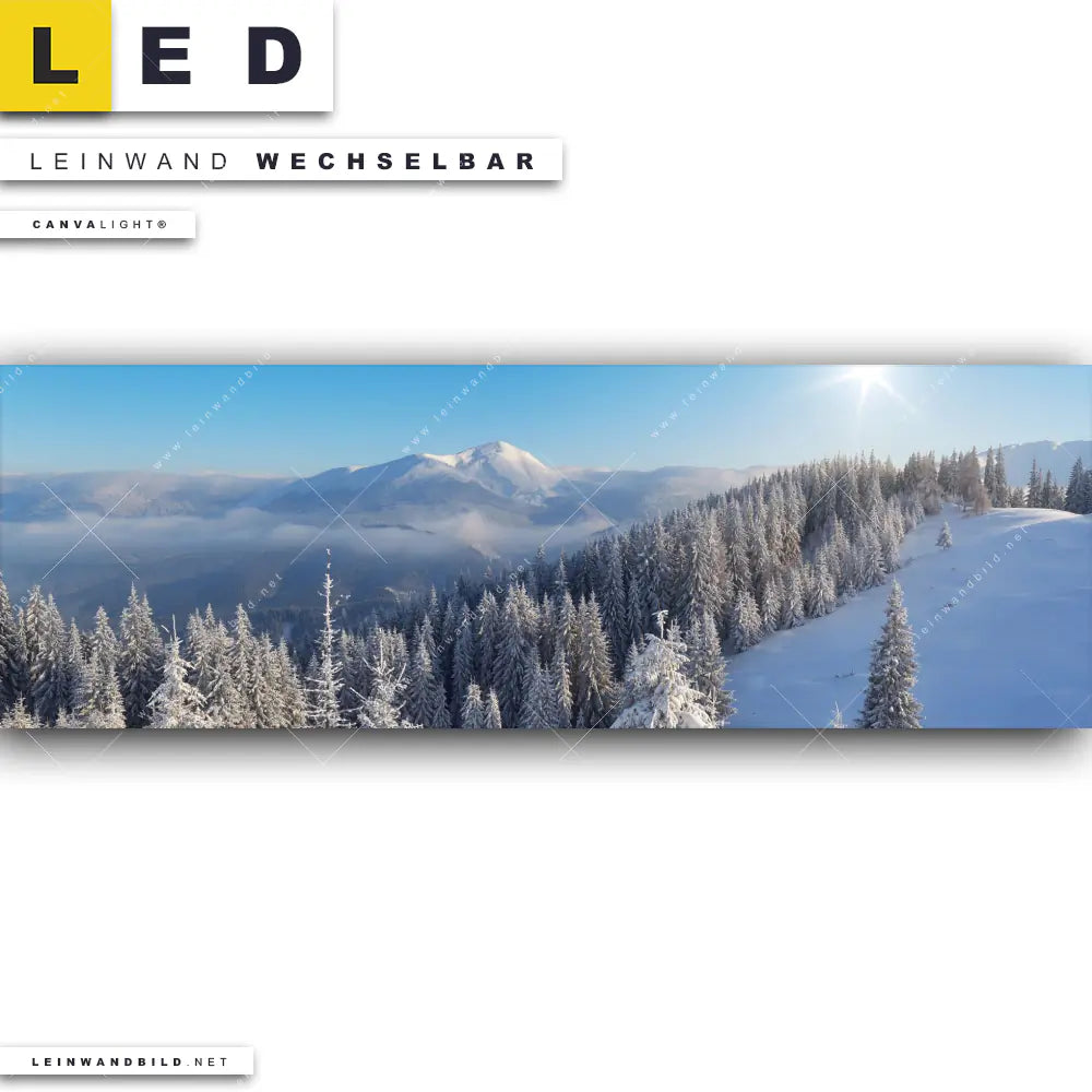LED Leinwandbild Canvalight® TEX | Berge und Wälder in Schnee | Panorama