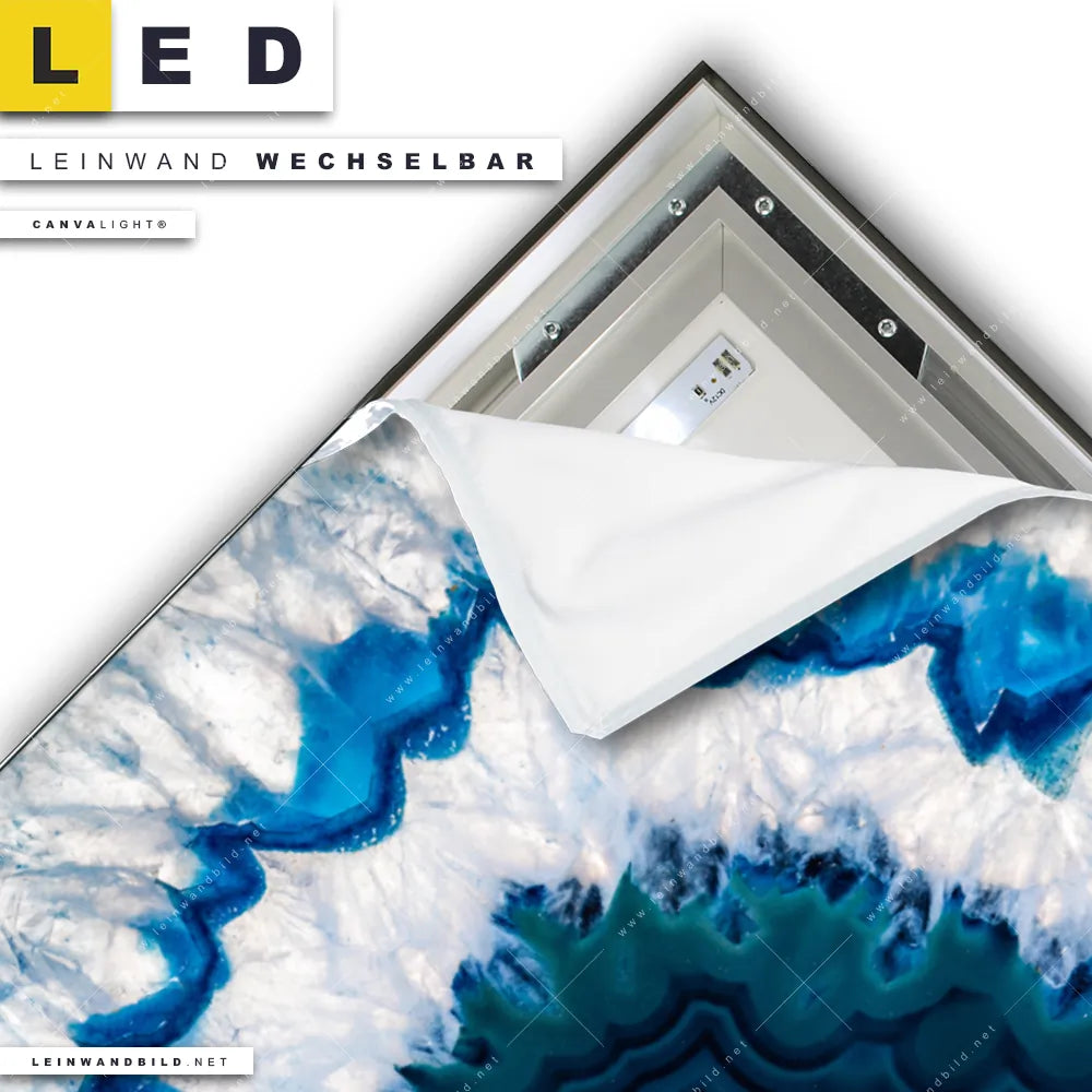 LED Leinwandbild Canvalight® TEX | Blauer Achat | Hochformat