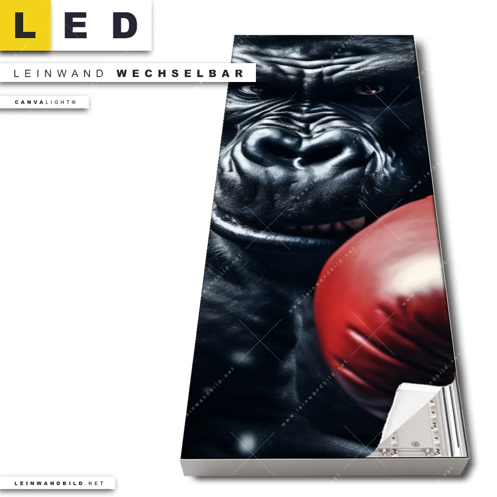 LED Leinwandbild Canvalight® TEX | Gorilla mit roten Boxhandschuhen | Schmal
