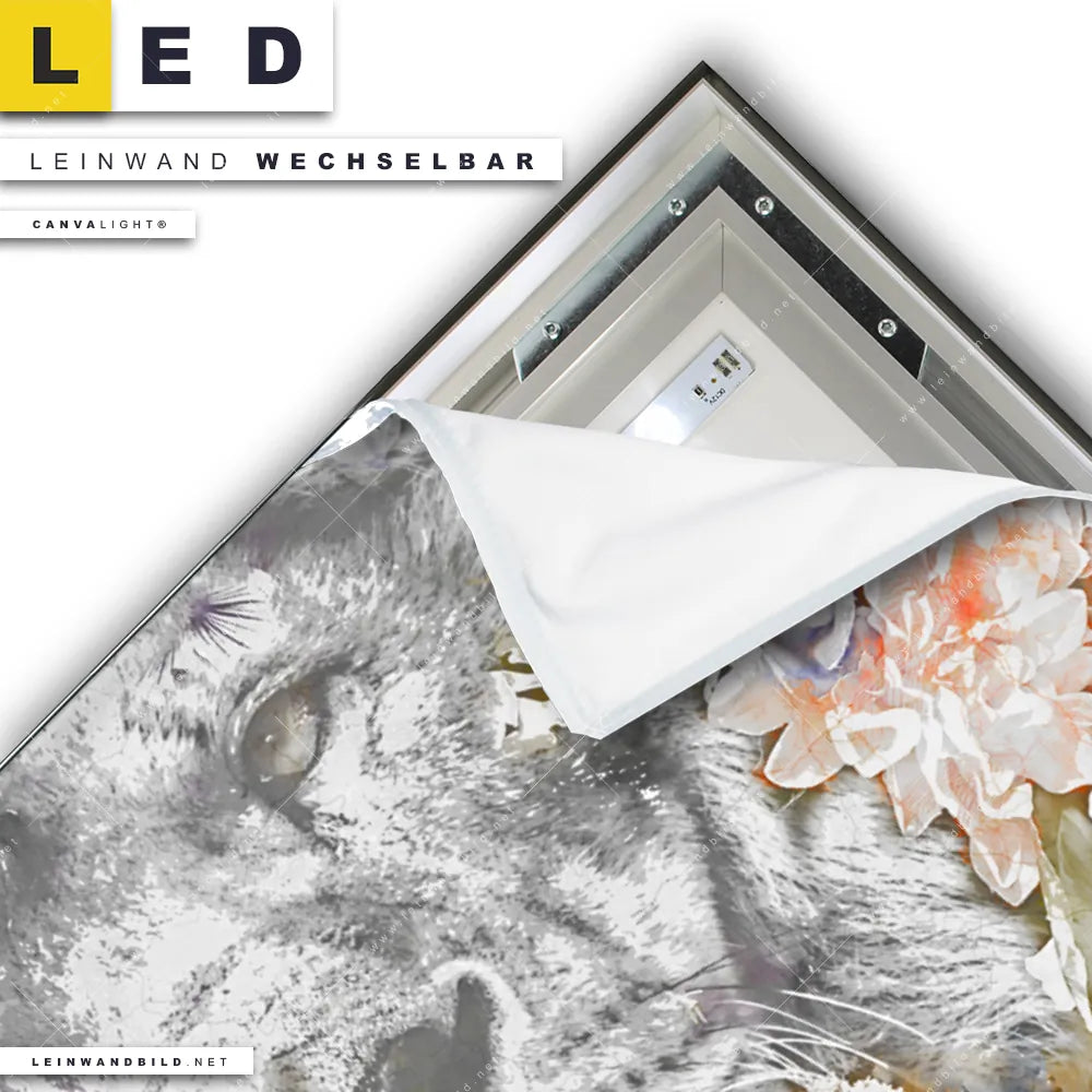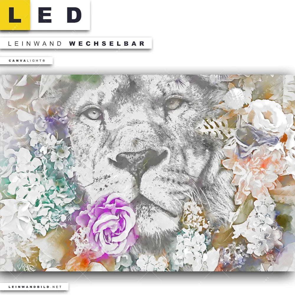 LED Leinwandbild Canvalight® TEX | Löwe & Blumen | Querformat