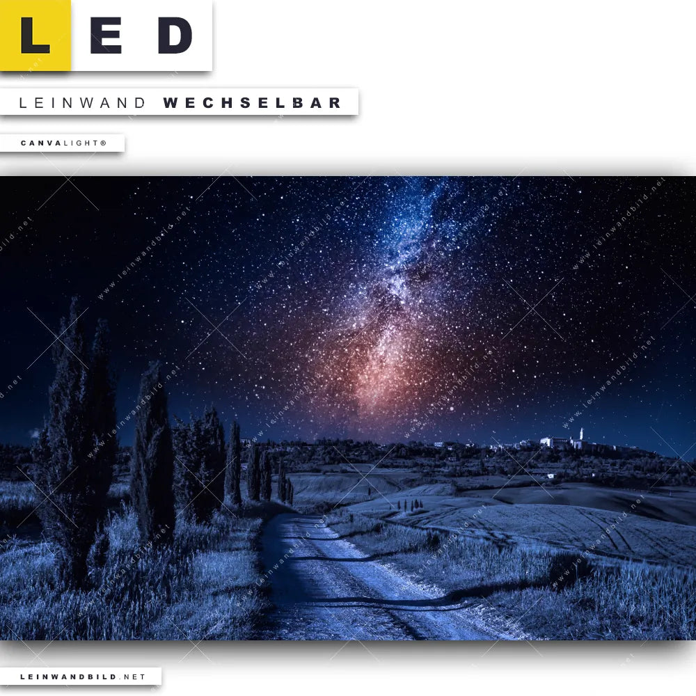 LED Leinwandbild Canvalight® TEX | Milchstraße über einem Feldweg | Querformat