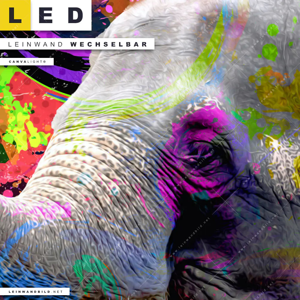 Du bist auf der Suche nach einem Tierwelt LED Leinwandbild im Hochformat? Begriffe wie Elefant, Afrika, Big Five, Dickhäuter, Stoßzahn, Farbspritzer, Farbwolke, Dschungel haben Dich auf der Suche nach Deinem neuen XXL LED Wandbild mit wechselbarer Leinwand inspiriert? Farben wie Bunt dürfen auf Deinem neuen Leinwand-LED-Bild nicht fehlen und Leuchtbilder im Modern Art, Pop Art Stil passen perfekt zu Deinem Einrichtungsstil?