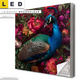 LED Leinwandbild Canvalight® TEX | Prachtvoller Pfau und Blüten | Querformat
