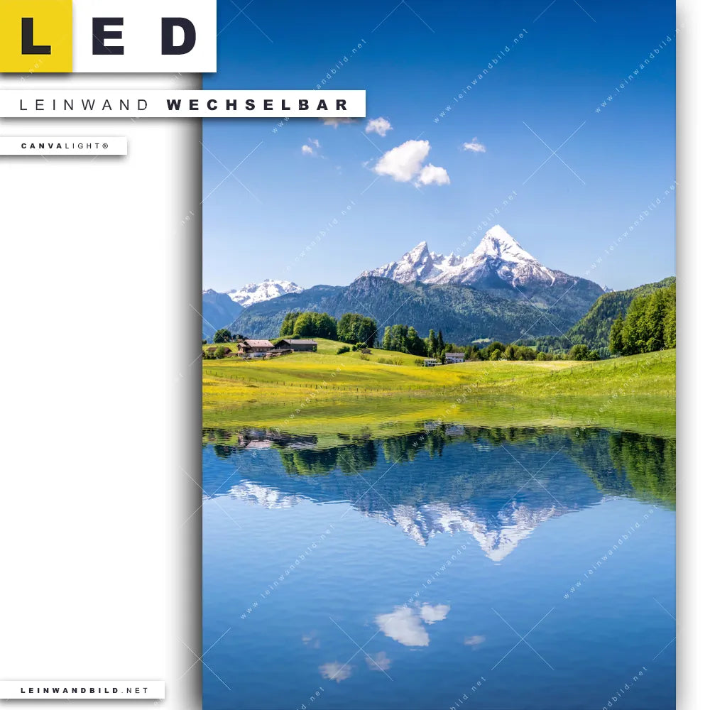 LED Leinwandbild Canvalight® TEX | Sommerlandschaft in den Alpen | Hochformat