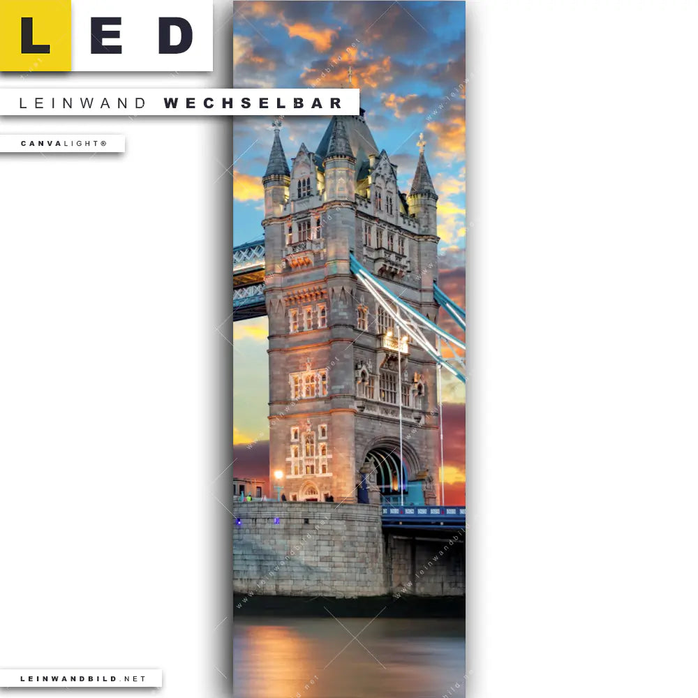 LED Leinwandbild Canvalight® TEX | Tower Bridge im Abendglanz | Schmal