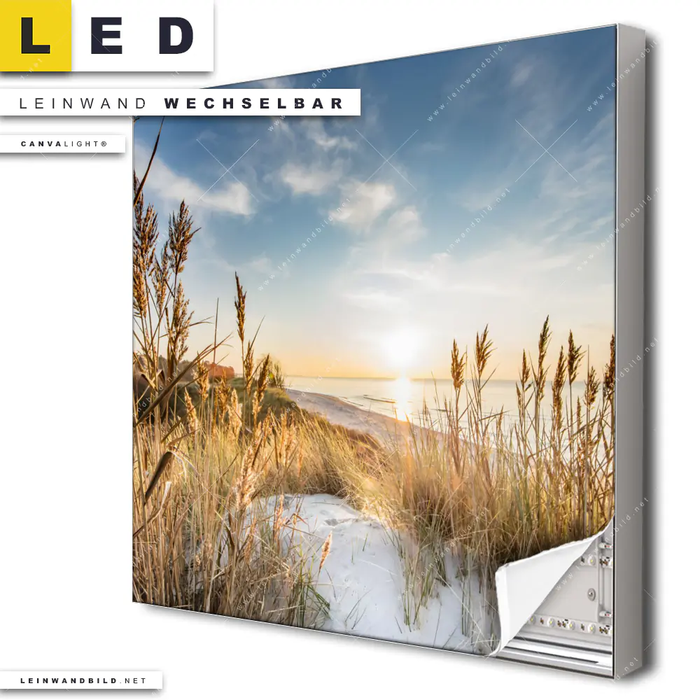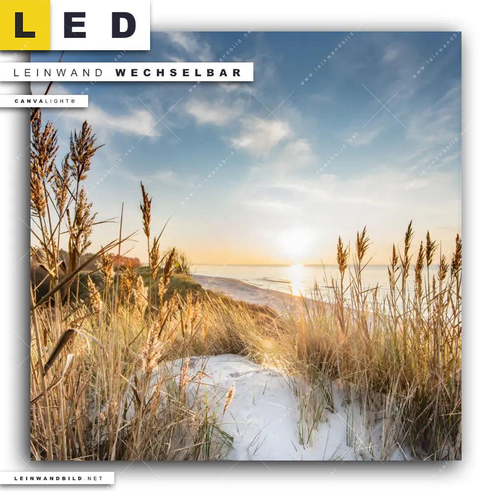 Du bist auf der Suche nach einem Landschaften, Strand - Meer LED Leinwandbild im Quadratischen Format? Begriffe wie Deutschland, Sommer, Dünen, Gräser, Urlaub, Reisen, Ostsee, Nordsee, Strand, Meer, Sonnenuntergang, Sonnenaufgang haben Dich auf der Suche nach Deinem neuen XXL LED Wandbild mit wechselbarer Leinwand inspiriert? Farben wie Beige, Blau, Braun dürfen auf Deinem neuen Leinwand-LED-Bild nicht fehlen und Leuchtbilder im Retro - Vintage, Natürlich - Realistisch Stil passen perfekt zu Deinem Einrichtungsstil?