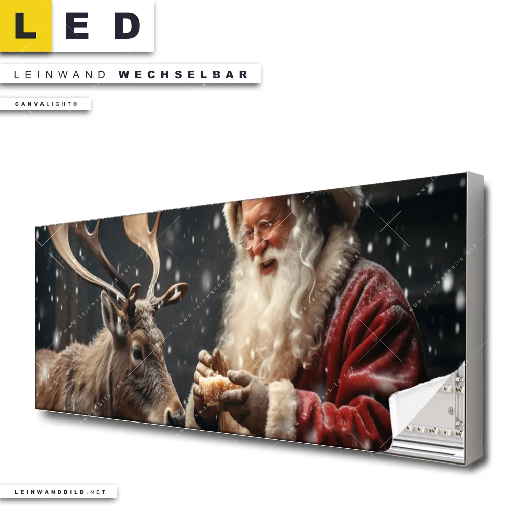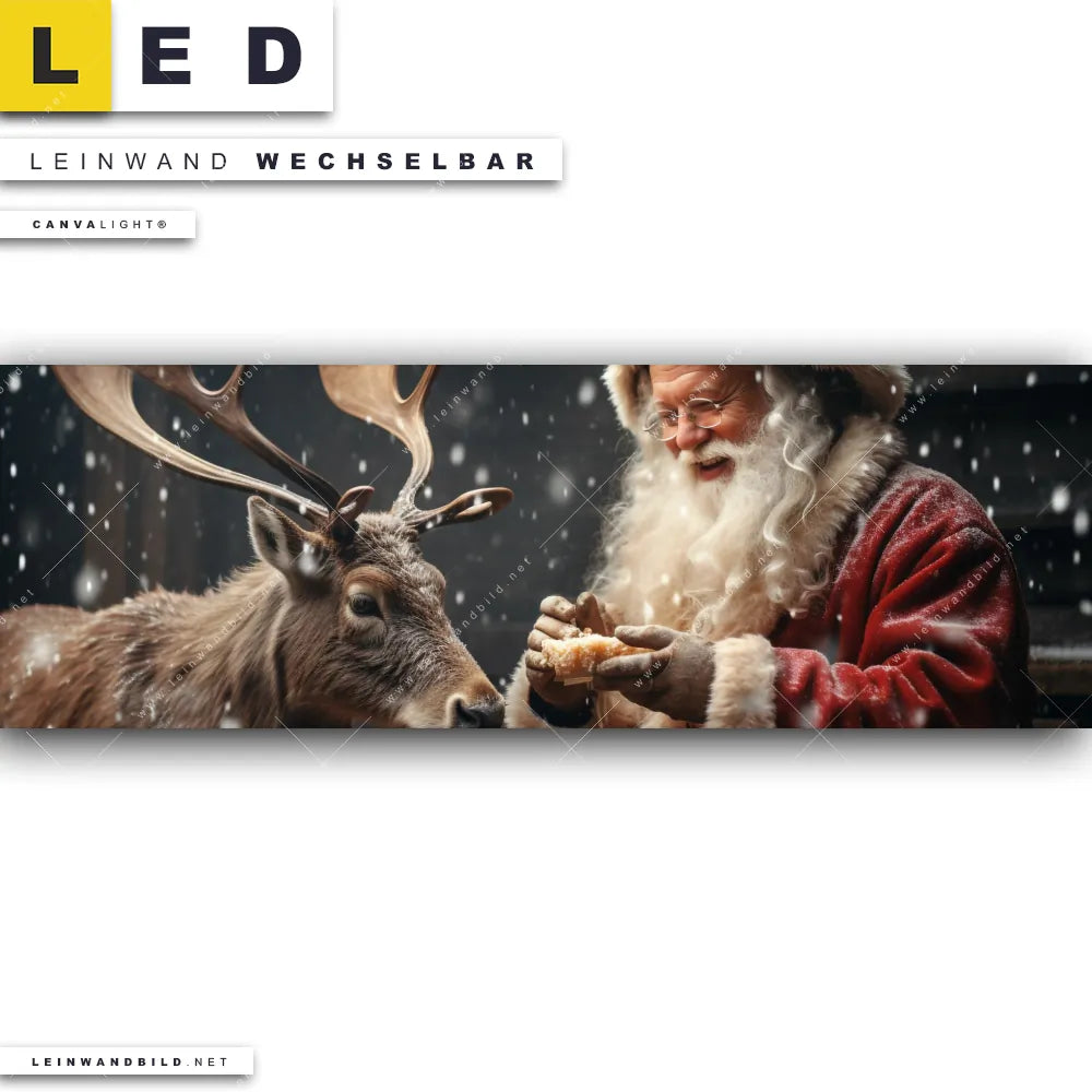 LED Leinwandbild Canvalight® TEX | Weihnachtsmann füttert Rentier | Panorama