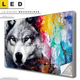 LED Leinwandbild Canvalight® TEX | Wolf mit bunten Farbspritzern | Quadrat