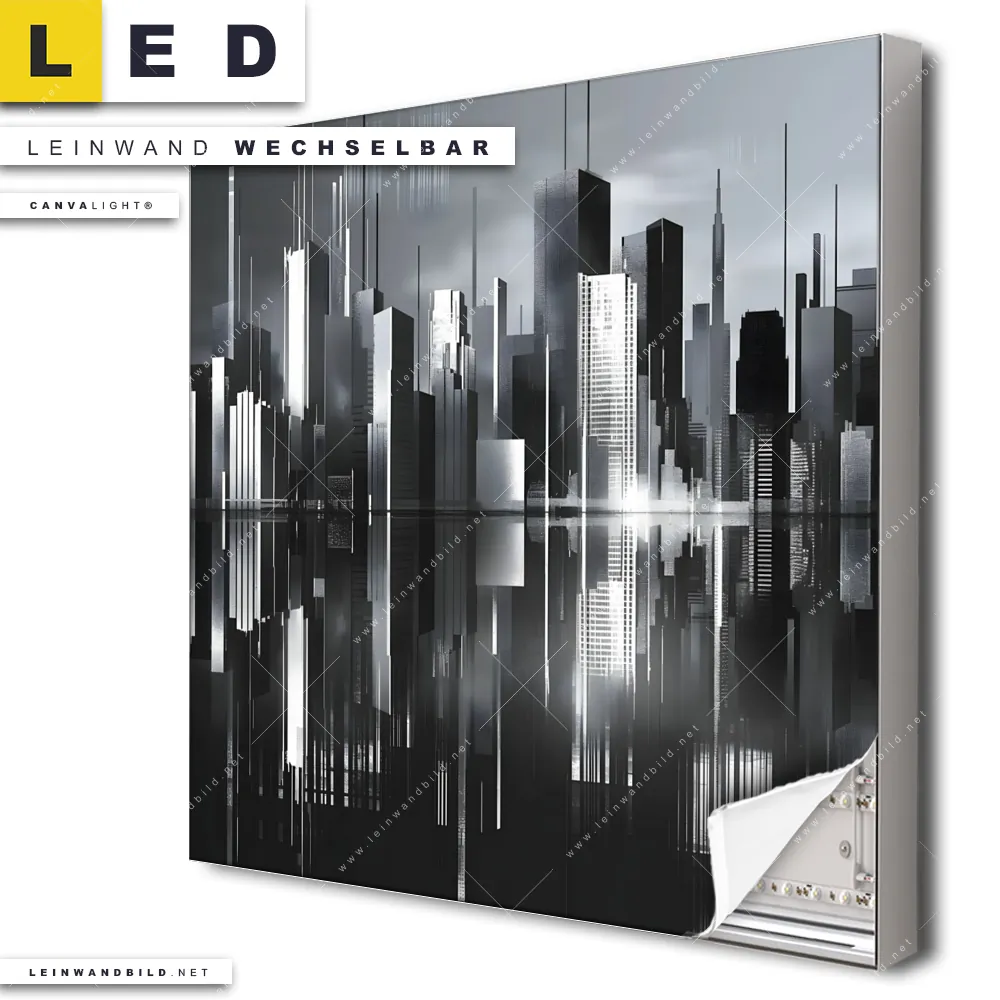 LED Leinwandbild Canvalight® TEX | Futuristische Skyline | Quadrat
