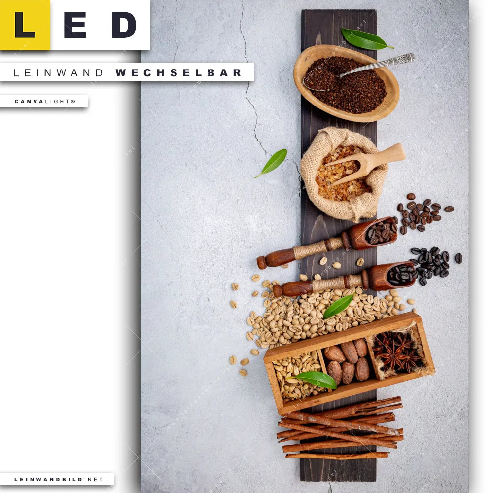 Du bist auf der Suche nach einem Essen - Trinken LED Leinwandbild im Hochformat? Begriffe wie Kaffee, Coffee, Küche, Kaffebohnen, Bohne, Genuss, Aroma, Brauner Zucker, Zimtstangen, Sternanis, Holzbrett haben Dich auf der Suche nach Deinem neuen XXL LED Wandbild mit wechselbarer Leinwand inspiriert? Farben wie Braun, Beige, Grün dürfen auf Deinem neuen Leinwand-LED-Bild nicht fehlen und Leuchtbilder im Minimalistisch, Modern Art Stil passen perfekt zu Deinem Einrichtungsstil?