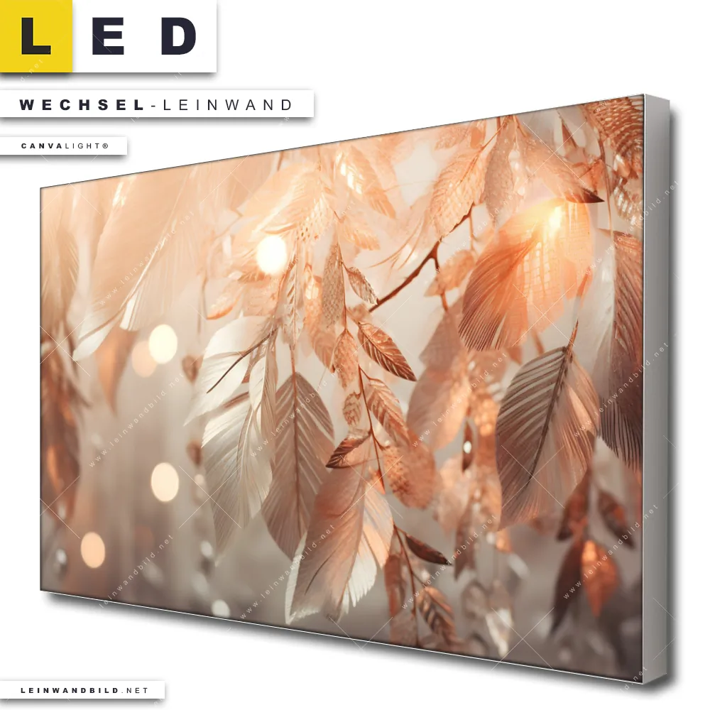 Du bist auf der Suche nach einer Blumen - Botanik Wechsel-Leinwand für Dein LED-Leinwandbild im Querformat? Begriffe wie Blätter, Laub, Sonnenlicht, Nahaufnahme, Close Up, edel haben Dich auf der Suche nach Deiner Ersatz-Leinwand für dein breites LED Wandbild mit wechselbarer Leinwand inspiriert? Farben wie Gold, Orange dürfen auf Deinem neuen Wechselmotiv für Dein XXL Leinwand-LED-Bild nicht fehlen und Leinwände im Floral, Modern Art Stil für Leuchtbilder passen perfekt zu Deinem Einrichtungsstil?