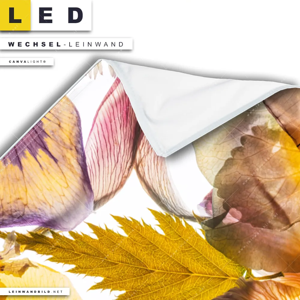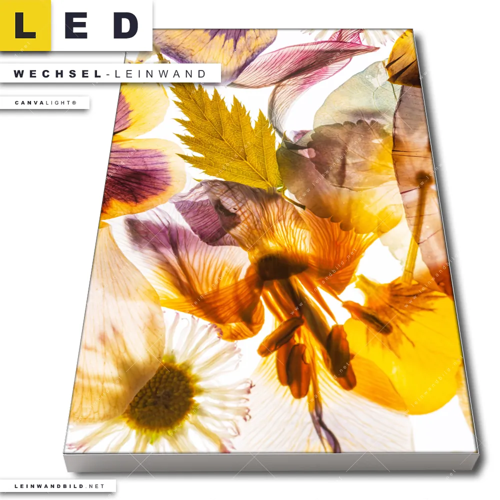 LED Wechsel-Leinwand Canvalight® TEX | Blumen Collage No.1 | Hochformat