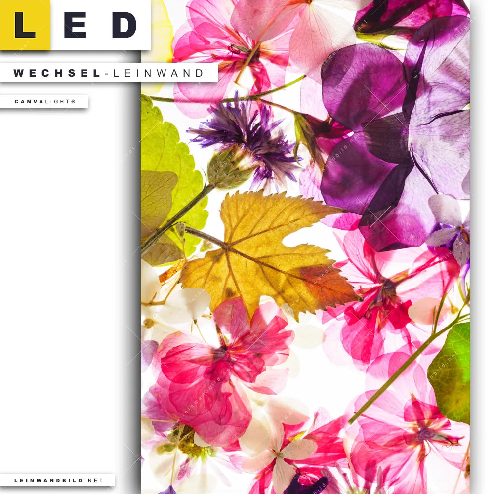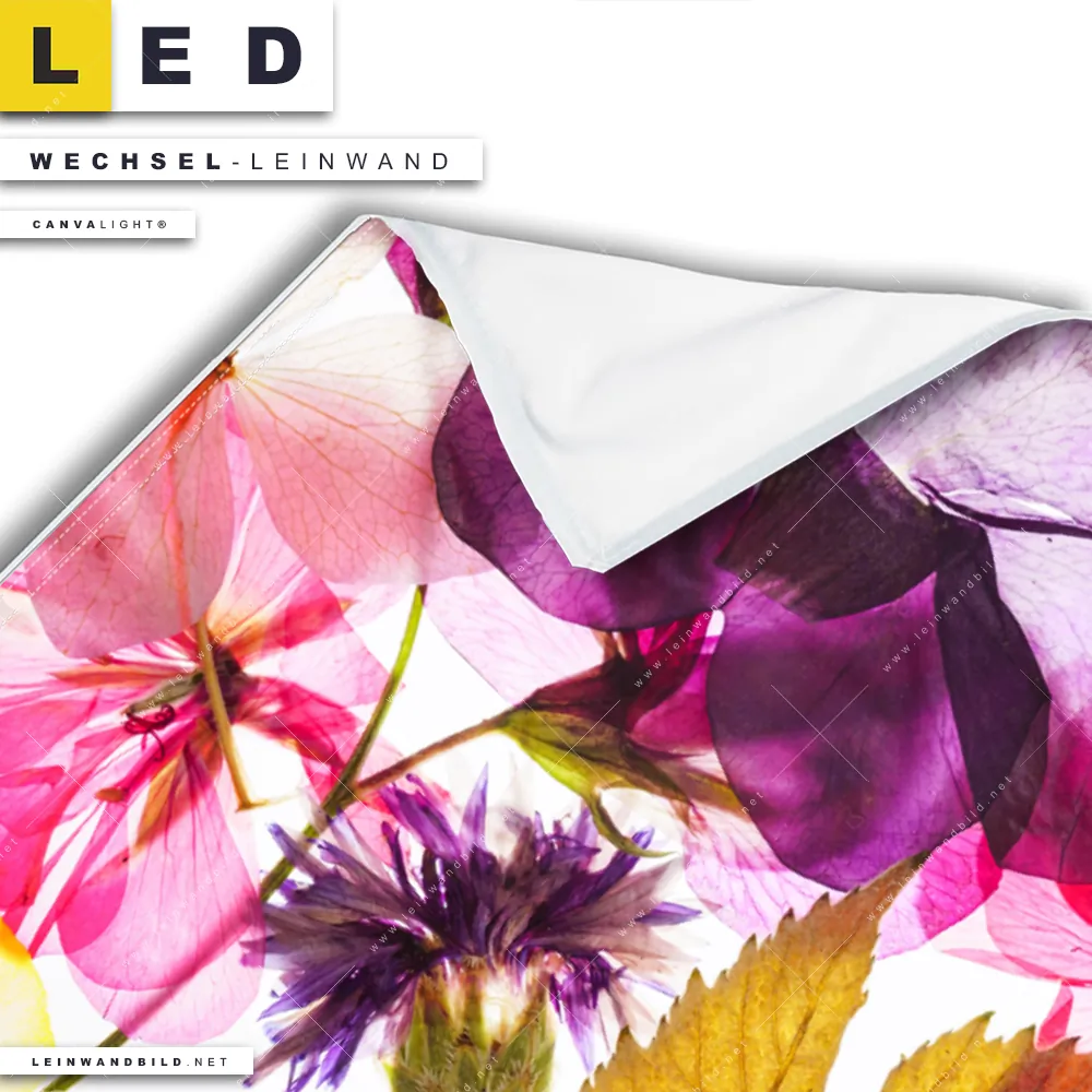 LED Wechsel-Leinwand Canvalight® TEX | Blumen Collage No.2 | Hochformat