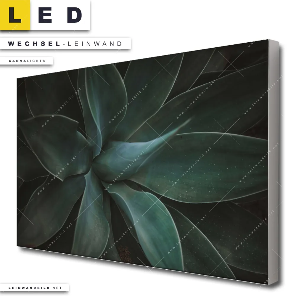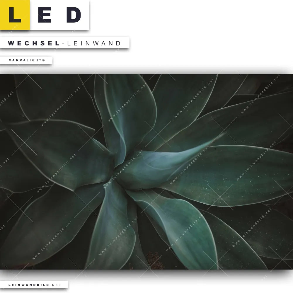 LED Wechsel-Leinwand Canvalight® TEX | Dunkles Agavenblatt | Querformat