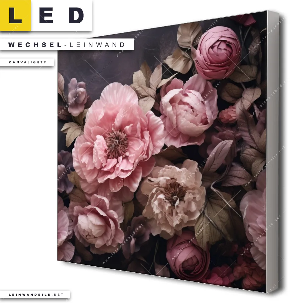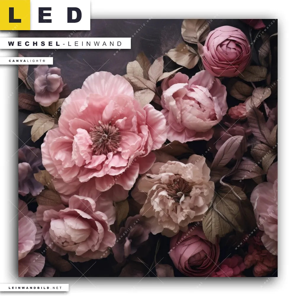 Du bist auf der Suche nach einer Blumen - Botanik Wechsel-Leinwand für Dein LED-Leinwandbild im Quadratischen Format? Begriffe wie Pflanze, Natur, Blüte, Rose haben Dich auf der Suche nach Deiner Ersatz-Leinwand für dein LED Wandbild mit wechselbarer Leinwand inspiriert? Farben wie Grau , Rosa dürfen auf Deinem neuen Wechselmotiv für Dein XXL Leinwand-LED-Bild nicht fehlen und Leinwände im Floral, Retro - Vintage Stil für Leuchtbilder passen perfekt zu Deinem Einrichtungsstil?