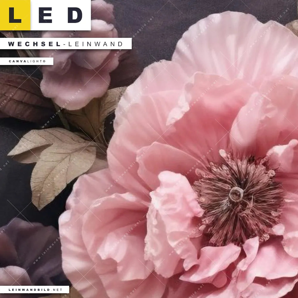 Du konfigurierst Deine individuelle LED Wechsel-Leinwand Canvalight® TEX | Hellrosa Blumen | Quadrat und wir produzieren sie NEU für Dich. Unsere Blumen - Botanik Austausch-Fotoleinwände für Canvalight® LED Bilder sind KEINE Lagerware. Du bist Dir unsicher, welches Motiv oder Format das richtige für dein individuelles LED Wechselmotiv auf Leinwand ist, dann helfen wir dir gerne weiter und beraten dich!