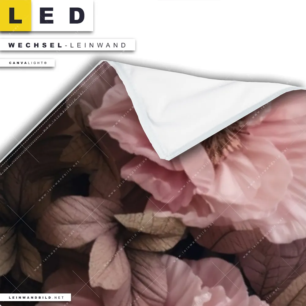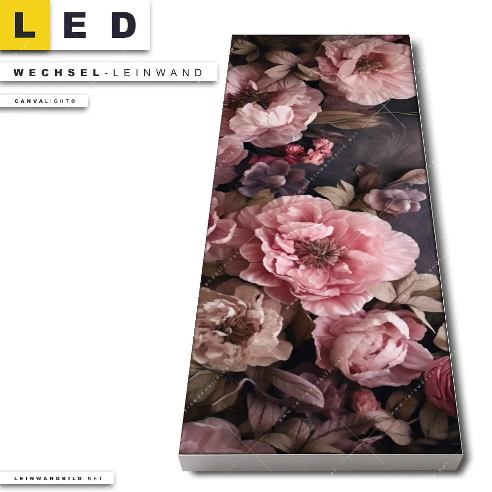 Du konfigurierst Deine individuelle LED Wechsel-Leinwand Canvalight® TEX | Hellrosa Blumen | Schmal und wir produzieren sie NEU für Dich. Unsere Blumen - Botanik Austausch-Fotoleinwände für Canvalight® LED Bilder sind KEINE Lagerware. Du bist Dir unsicher, welches Motiv oder Format das richtige für dein individuelles LED Wechselmotiv auf Leinwand ist, dann helfen wir dir gerne weiter und beraten dich!