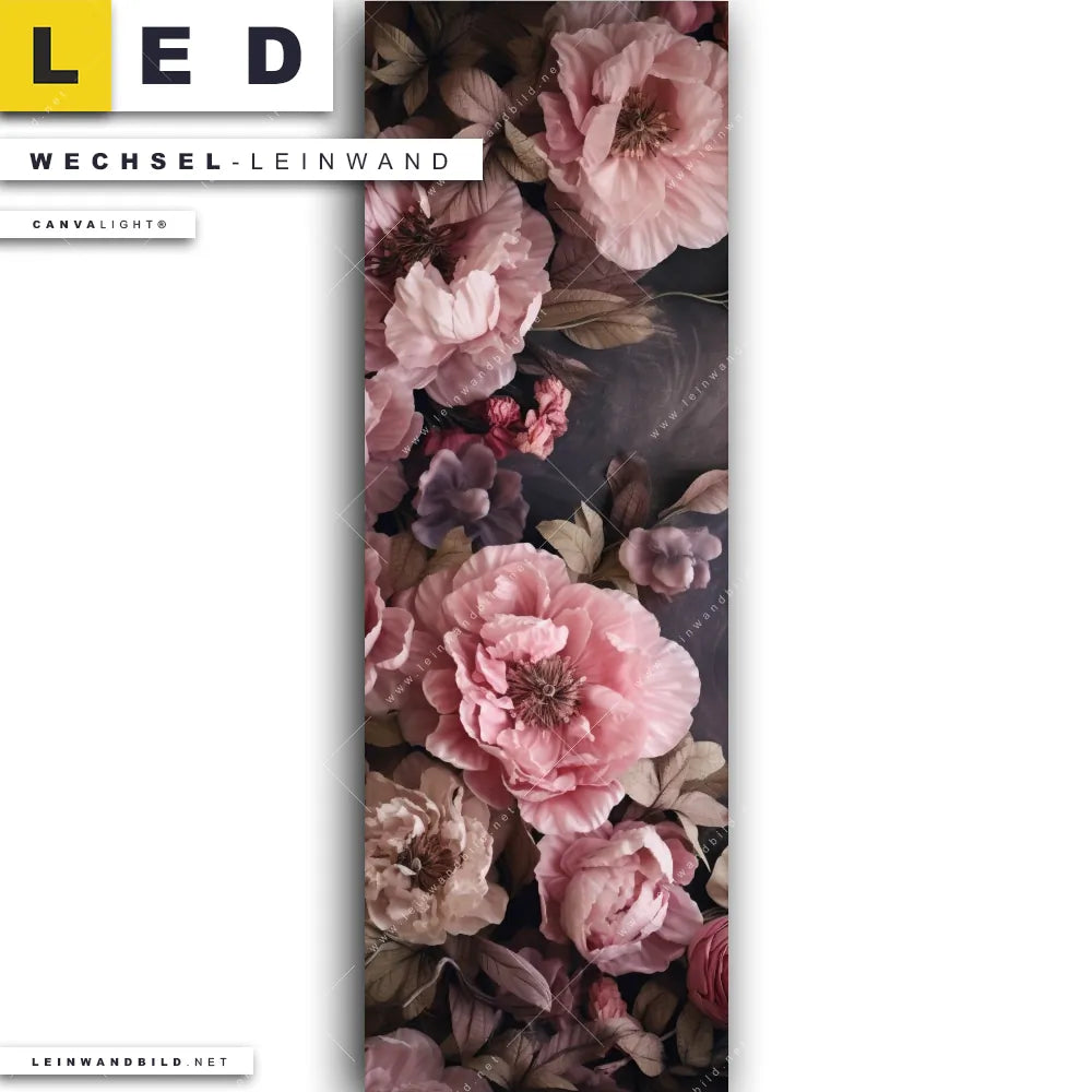 Du bist auf der Suche nach einer Blumen - Botanik Wechsel-Leinwand für Dein LED-Leinwandbild im Schmalen Format? Begriffe wie Pflanze, Natur, Blüte, Rose haben Dich auf der Suche nach Deiner Ersatz-Leinwand für dein LED Wandbild im Panorama-Hochformat mit wechselbarer Leinwand inspiriert? Farben wie Grau , Rosa dürfen auf Deinem neuen Wechselmotiv für Dein XXL Leinwand-LED-Bild nicht fehlen und Leinwände im Floral, Retro - Vintage Stil für Leuchtbilder passen perfekt zu Deinem Einrichtungsstil?