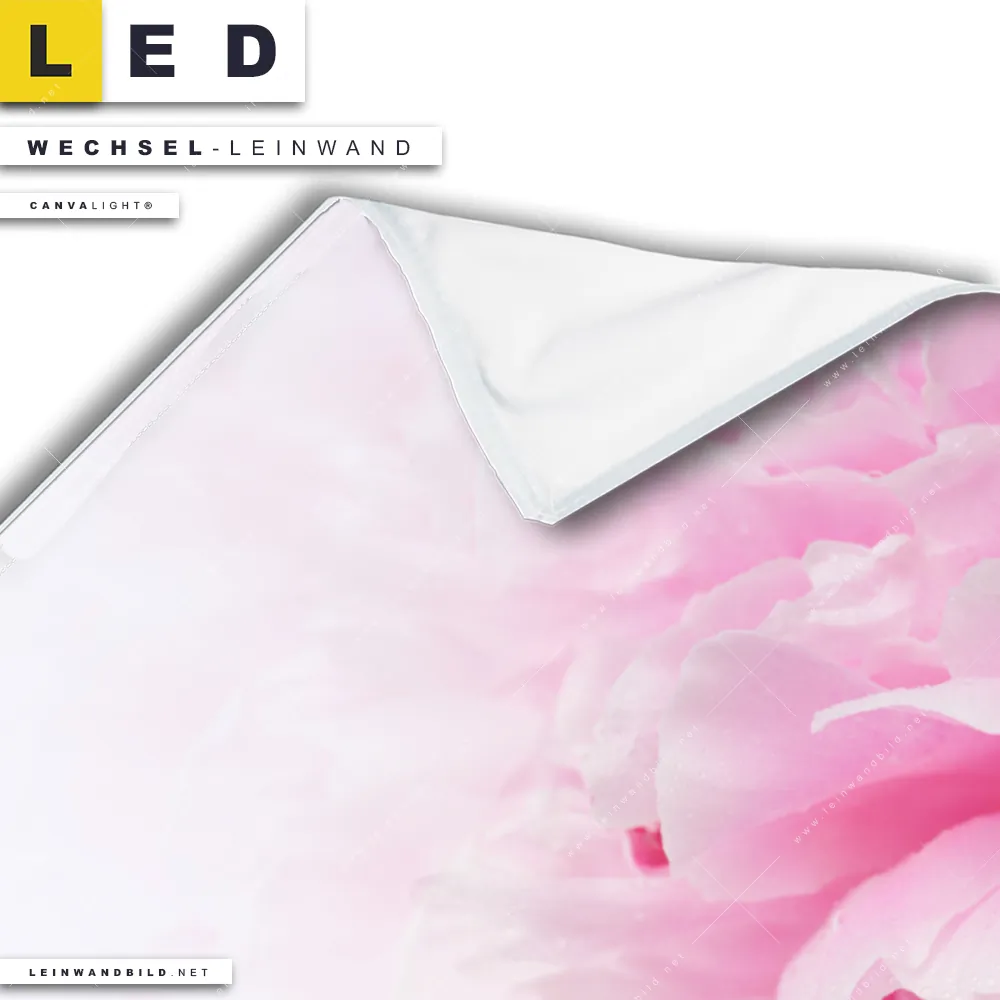 Du konfigurierst Deine individuelle LED Wechsel-Leinwand Canvalight® TEX | Pfingstrose | Hochformat und wir produzieren sie NEU für Dich. Unsere Blumen - Botanik Austausch-Fotoleinwände für Canvalight® LED Bilder sind KEINE Lagerware. Du bist Dir unsicher, welches Motiv oder Format das richtige für dein individuelles LED Wechselmotiv auf Leinwand ist, dann helfen wir dir gerne weiter und beraten dich!
