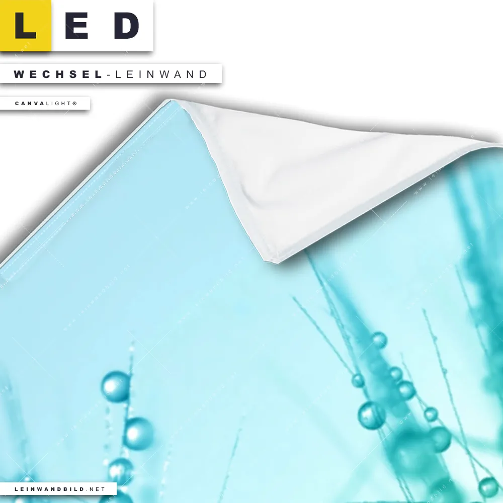 Du konfigurierst Deine individuelle LED Wechsel-Leinwand Canvalight® TEX | Pusteblume mit Tautropfen | Panorama und wir produzieren sie NEU für Dich. Unsere Blumen - Botanik Austausch-Fotoleinwände für Canvalight® LED Bilder sind KEINE Lagerware. Du bist Dir unsicher, welches Motiv oder Format das richtige für dein individuelles LED Wechselmotiv auf Leinwand ist, dann helfen wir dir gerne weiter und beraten dich!