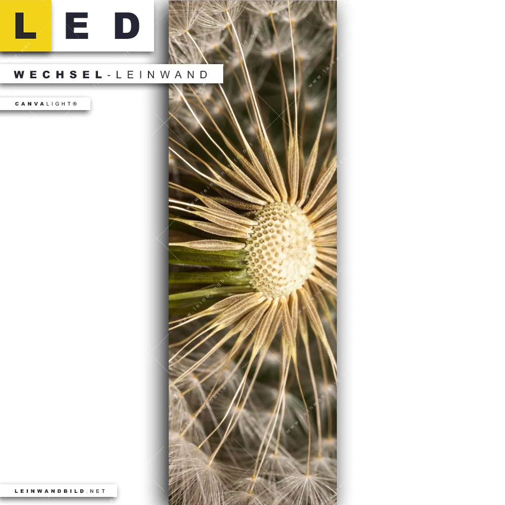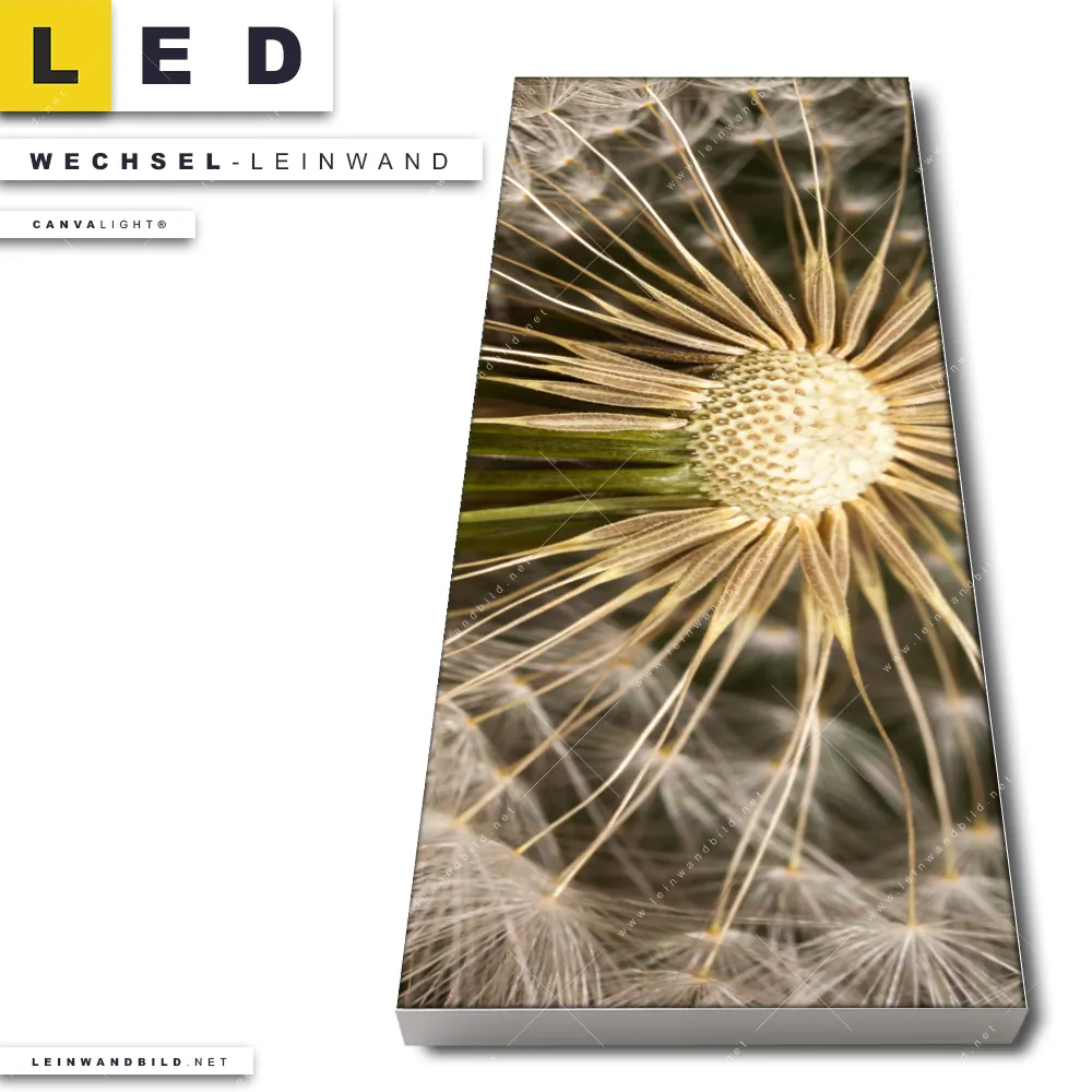 Du konfigurierst Deine individuelle LED Wechsel-Leinwand Canvalight® TEX | Pusteblume No. 11 | Schmal und wir produzieren sie NEU für Dich. Unsere Blumen - Botanik Austausch-Fotoleinwände für Canvalight® LED Bilder sind KEINE Lagerware. Du bist Dir unsicher, welches Motiv oder Format das richtige für dein individuelles LED Wechselmotiv auf Leinwand ist, dann helfen wir dir gerne weiter und beraten dich!