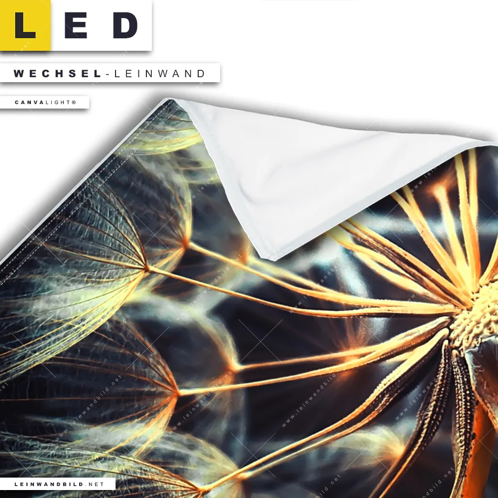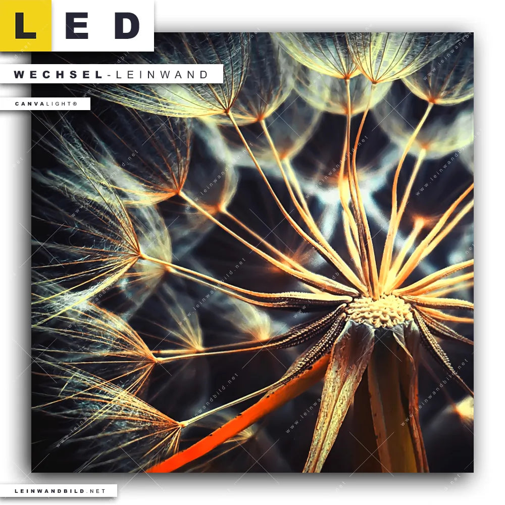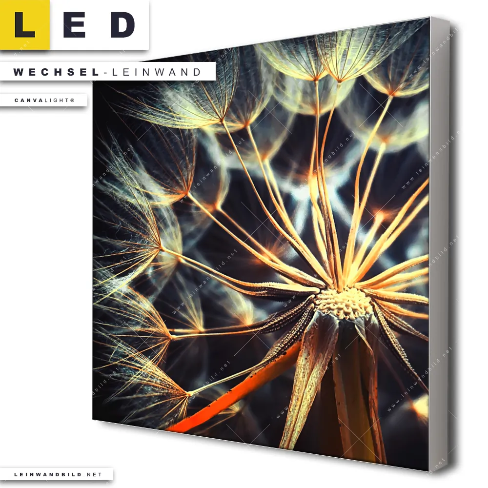 Du bist auf der Suche nach einer Blumen - Botanik Wechsel-Leinwand für Dein LED-Leinwandbild im Quadratischen Format? Begriffe wie Blume, Botanik, Pflanze, Natur, Nahaufnahme, Pusteblume, Dandelion, Löwenzahn haben Dich auf der Suche nach Deiner Ersatz-Leinwand für dein LED Wandbild mit wechselbarer Leinwand inspiriert? Farben wie Schwarz, Beige, Blau, Orange, Ocker dürfen auf Deinem neuen Wechselmotiv für Dein XXL Leinwand-LED-Bild nicht fehlen und Leinwände im Floral, Natürlich - Realistisch Stil für Leuchtbilder passen perfekt zu Deinem Einrichtungsstil?