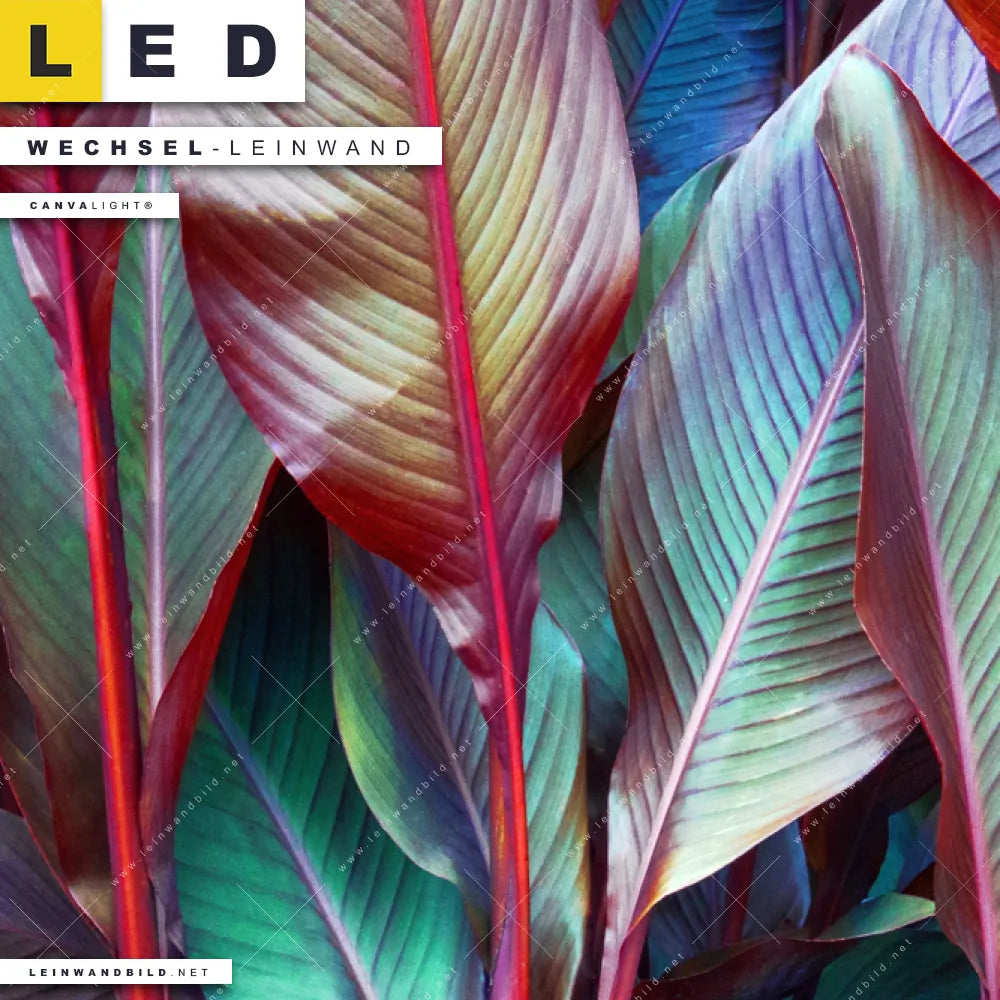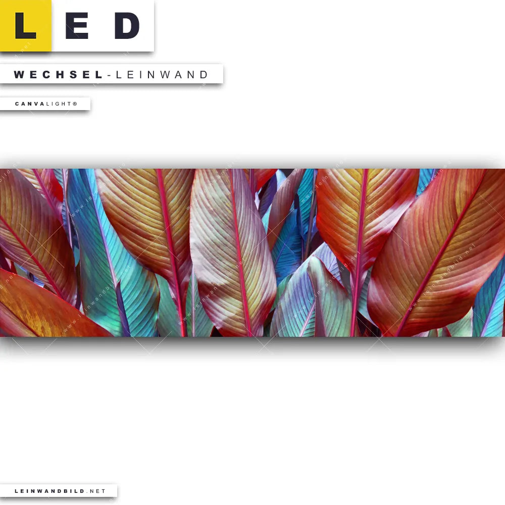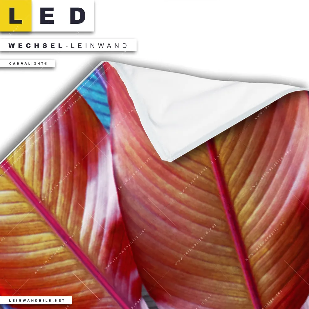 Du bist auf der Suche nach einer Muster - Texturen, Blumen - Botanik Wechsel-Leinwand für Dein LED-Leinwandbild im Panorama-Format? Begriffe wie Blätter, Pflanze, Natur, Nahaufnahme, Blatt, Laub, Dschungel haben Dich auf der Suche nach Deiner Ersatz-Leinwand für dein extra breites LED Wandbild mit wechselbarer Leinwand inspiriert? Farben wie Rot, Grün, Mint, Orange dürfen auf Deinem neuen Wechselmotiv für Dein XXL Leinwand-LED-Bild nicht fehlen und Leinwände im Floral, Modern Art Stil für Leuchtbilder passen perfekt zu Deinem Einrichtungsstil?