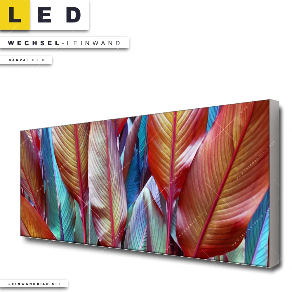 LED Wechsel-Leinwand Canvalight® TEX | Rote und smaragdgrüne Blätter | Panorama