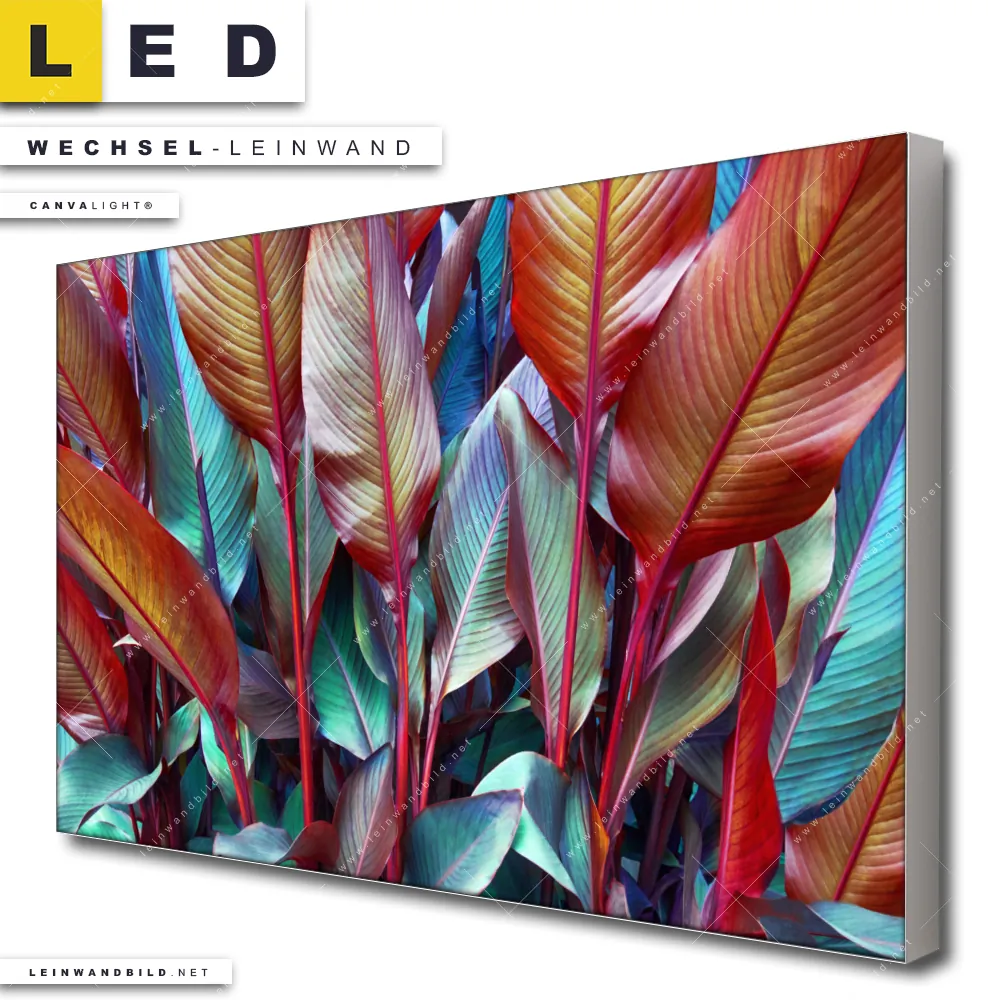 LED Wechsel-Leinwand Canvalight® TEX | Rote und smaragdgrüne Blätter | Querformat